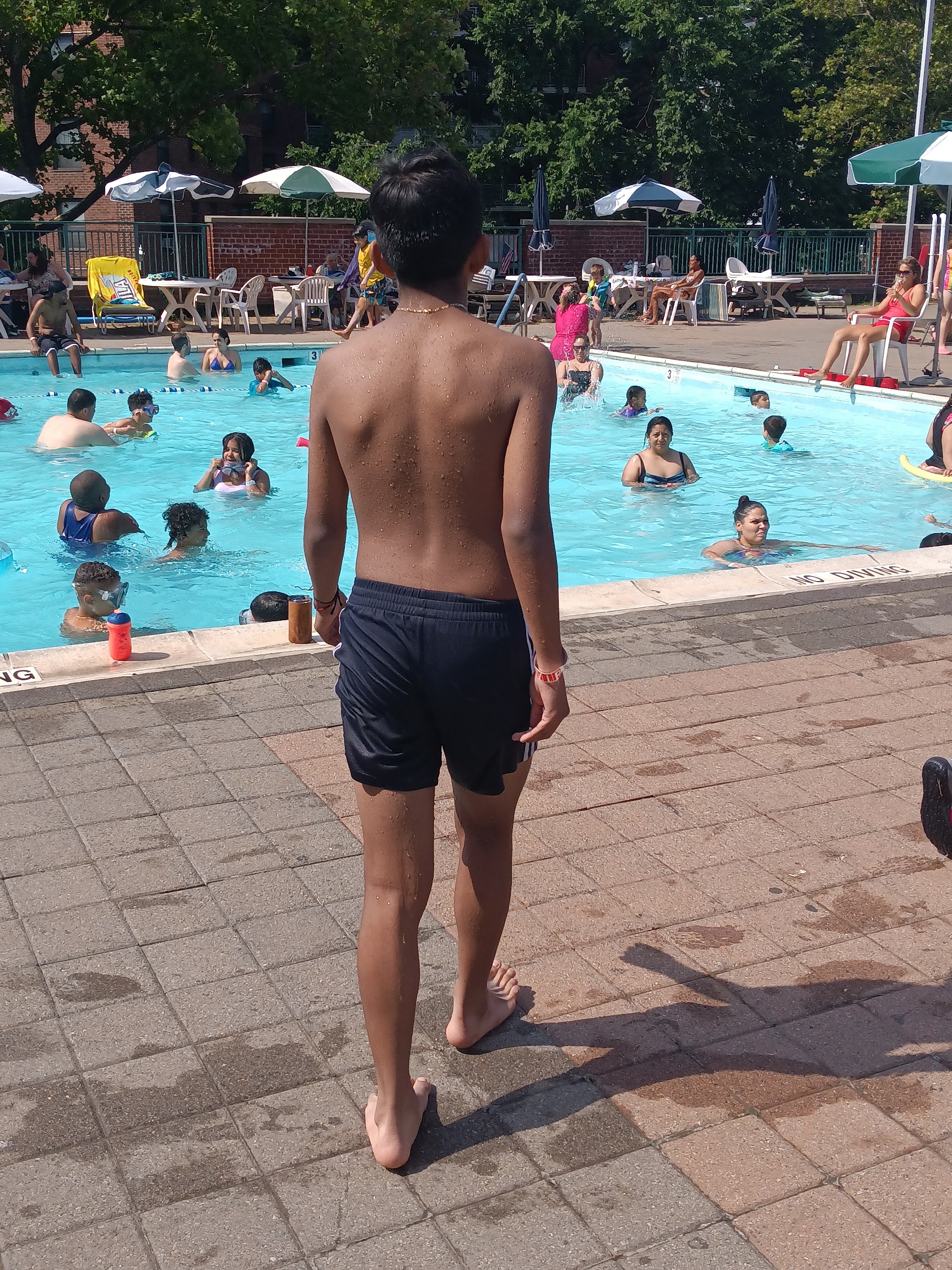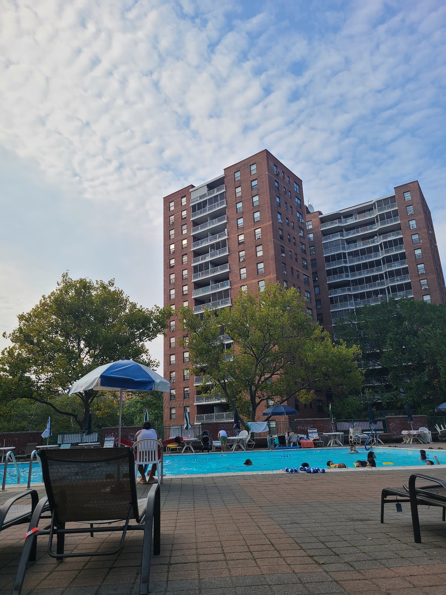 My family has been coming to this pool for a few years now. My son comes here several times a week. He swims a lot so it’s good for our family. They offer swim lessons, and the instructor Ian is excellent. This place gets very packed on a hot day, it is the cleanest first thing in the morning, and it is very beautiful. I know that they clean the pool and add more water every single day/ a few times a week because I see it (we come here, several times a week). The staff know my son by name and really support him. They are very concerned with kids who cannot swim so they’re constantly watching little kids to make sure that they are safe, so I highly recommend this pool for families. Definitely bring cash, there’s a guy that sells food. He only takes cash and downstairs the entrance fee is only cash. You can bring your own food, and your own drinks, definitely bring sunscreen, be prepared to pay more money for a table for an umbrella, or a for a specific type of chair. Make sure that you read and get yourself familiar with the rules before you come upstairs to the Pool. There are very specific rules, just like any pool in New York City. It is imperative that before you come or before you go upstairs after you pay that you find out what those rules are. I observe that a lot of people who come here don’t know the rules and then they get spoken to and then they get upset because they got spoken to when they broke the rules that they didn’t know about. The rules are written downstairs, it’s very obvious to me, and I just see a lot of people not paying attention and then getting upset when they get told that they’re breaking the rule. I think that the lifeguards are great. They pay attention. The pool is beautiful and clean. It gets really packed a lot of times, but even on a very hot day It’s nice and breezy Because if it’s location. I think it’s a hidden gem in Queens! Also, they had a kiddie pool for toddlers!! It’s amazing!