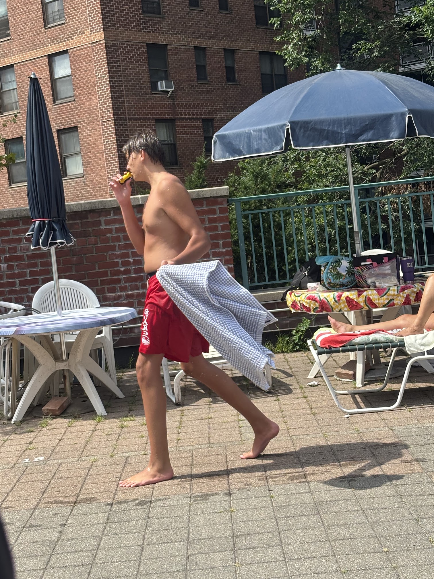 These most unkept swimming pool I have ever been too. The manager has a very poor attitude. Make sure you kids know how you swim because most of the employees are vaping or have ear pods in their ears while working. The tables that cost $40 to rent are broken and have sharp edges. They never gave us our lounge chair that comes with every table rental. They never gave us our lounge chair that we paid extra for. They never told us that one lounge chair comes with every table rental.The brush to clean the grill was on the floor on top of dirt.