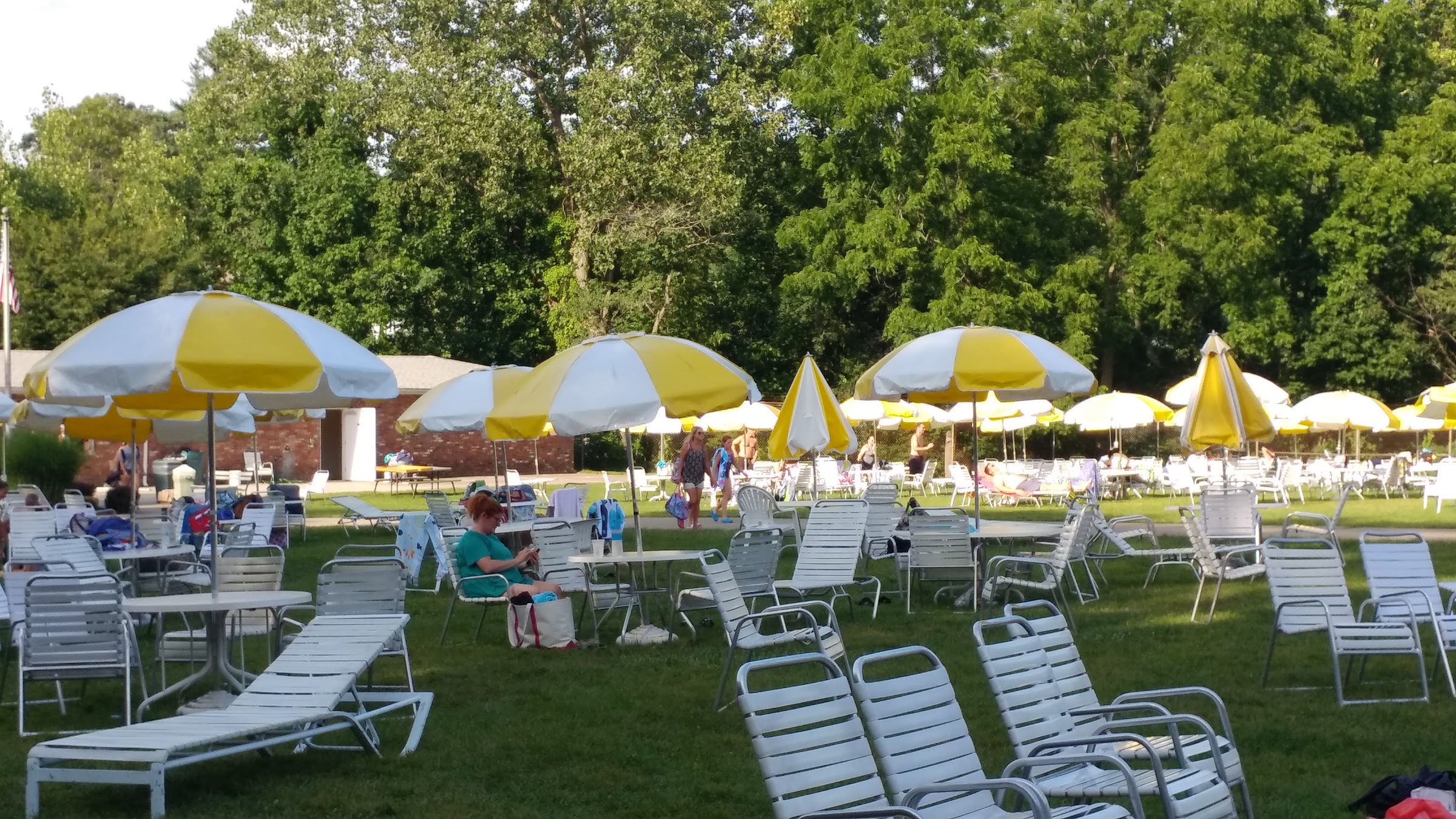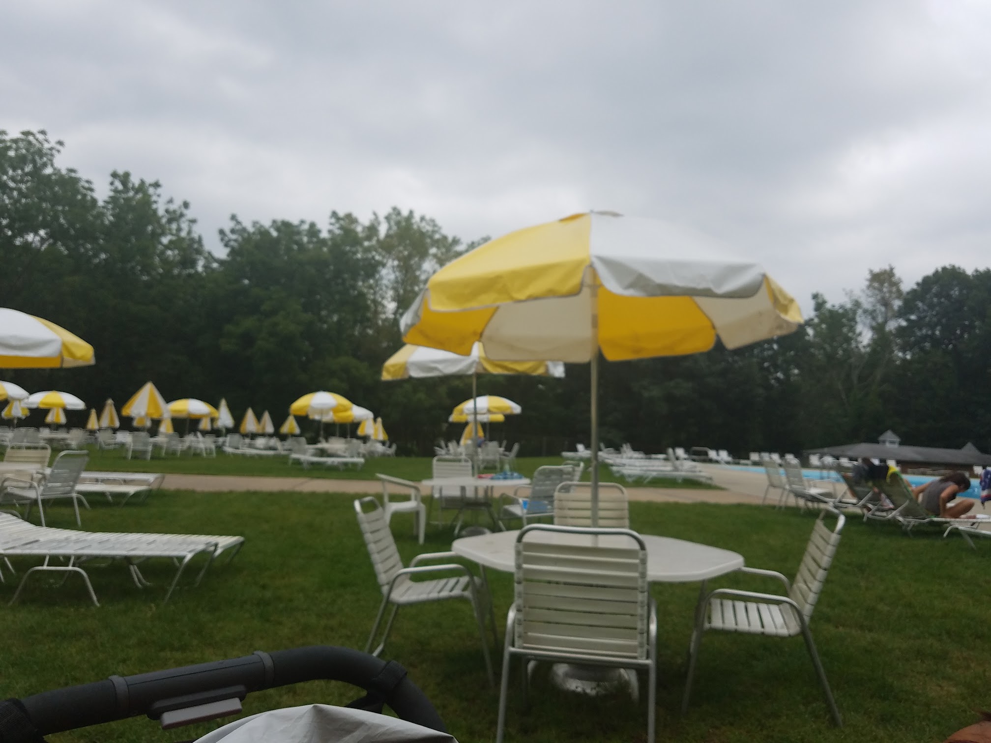 Nice pool, chairs with umbrellas and tables already setup. Snack food. Well kept grounds kiddie pool and big pool. Diffent activities throughout the summer.