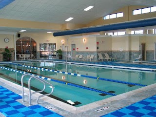 The facility includes a heated indoor lap pool. Specific temperature details are not publicly available.
