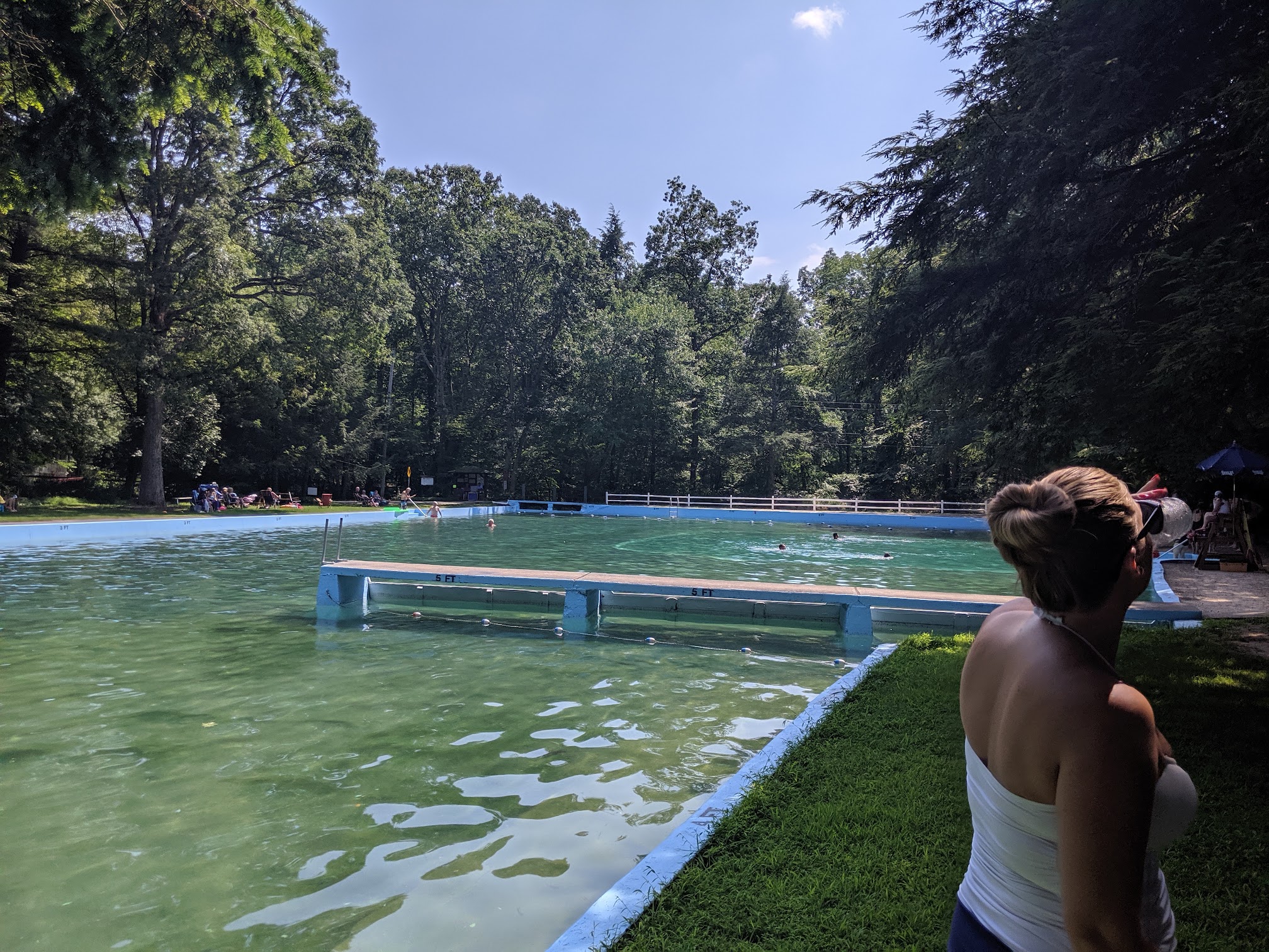 Very large pool. I would say extremely large. It's a pool fed from a natural spring so expect it to be cooler than a regular in ground pool. It is also treated, do it's clean. Surrounded by forest as well, lots of easy shade to sit by the side. Incredible value for cost of membership. They are very concerned about covid-19 and follow lots of precautions. Sanitizer is widely available, and everyone socially distances. I took off one star because I personally wish it was heated.