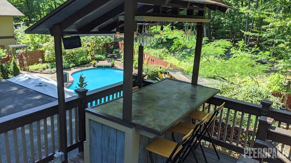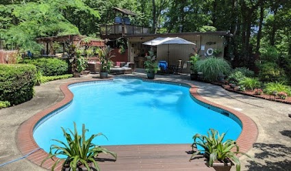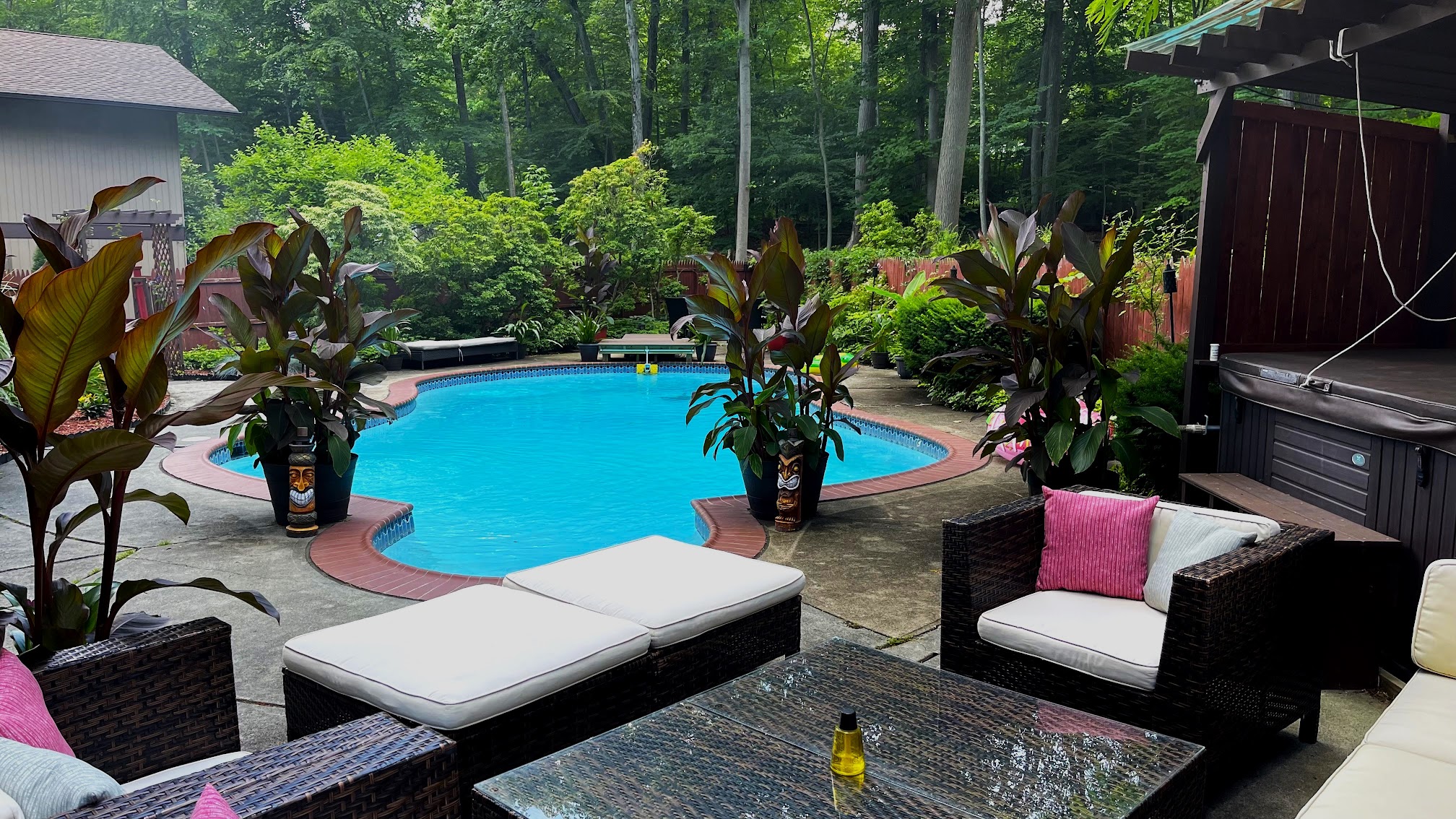 What are people saying (AI review summary)? The reviews overwhelmingly describe the pool as a stunning, serene, and pristine 'oasis,' perfect for various occasions from family gatherings with infants to solo relaxation. Guests consistently praise its exceptional cleanliness, beautiful scenery with lush plants, and the convenience of a private, well-maintained bathroom with a shower. The water quality and sun/shade balance are noted positively. The hosts are consistently lauded as amazing and the 'nicest people,' contributing to a highly recommended experience that many call the 'best place to be all summer.'