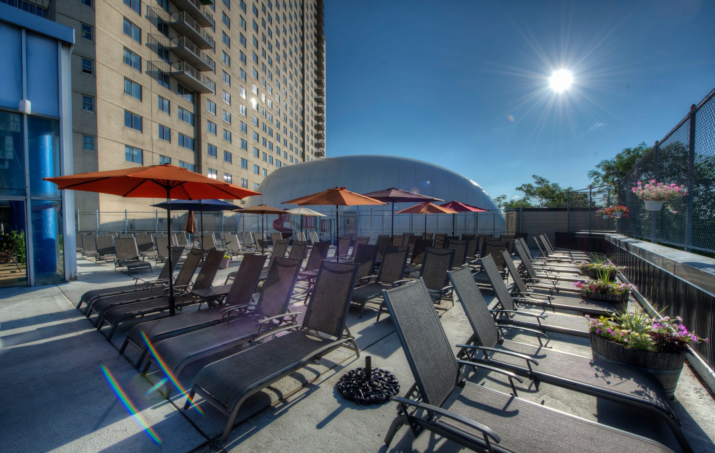 The indoor pool at TCR The Club of Riverdale is maintained at a comfortable 84 degrees Fahrenheit, while the outdoor pool is typically warmed to 82 degrees Fahrenheit. Additionally, the club features a hot tub set at a luxurious 104 degrees Fahrenheit.