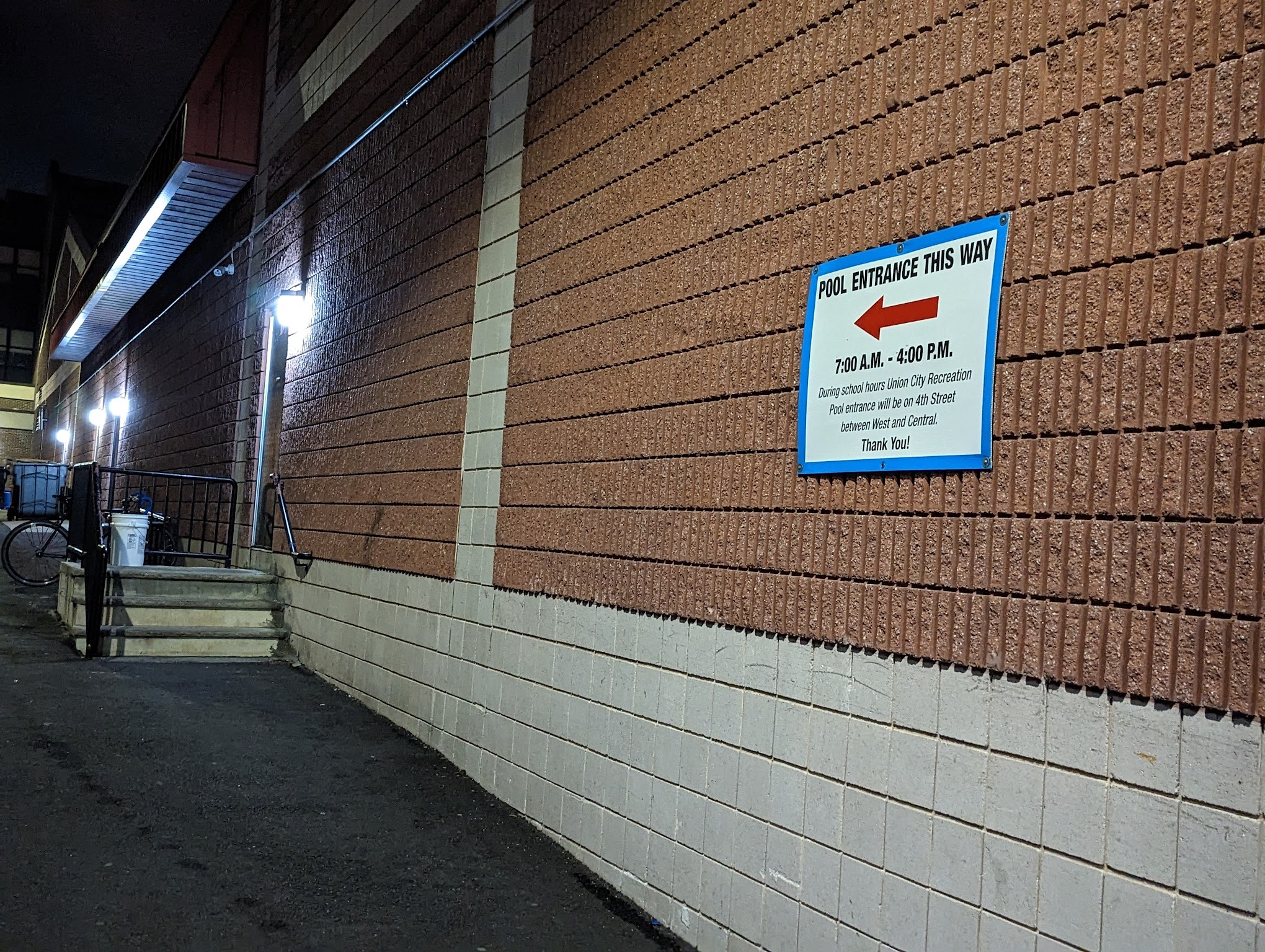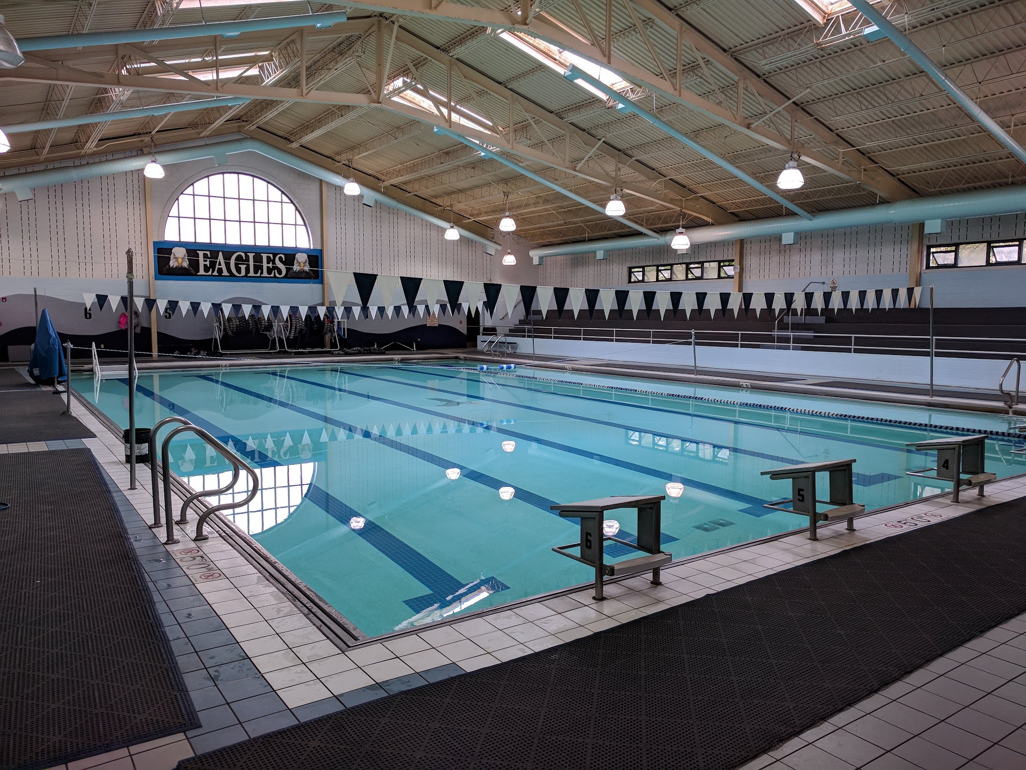 If you're looking for the adult swim, the entrance, its located in the back of the Bruce D. Walter Recreation Center. Follow the signs to door eight at the appropriate time, you can find the times on the swim table of the website. Lockers are available but make sure to take a lock.