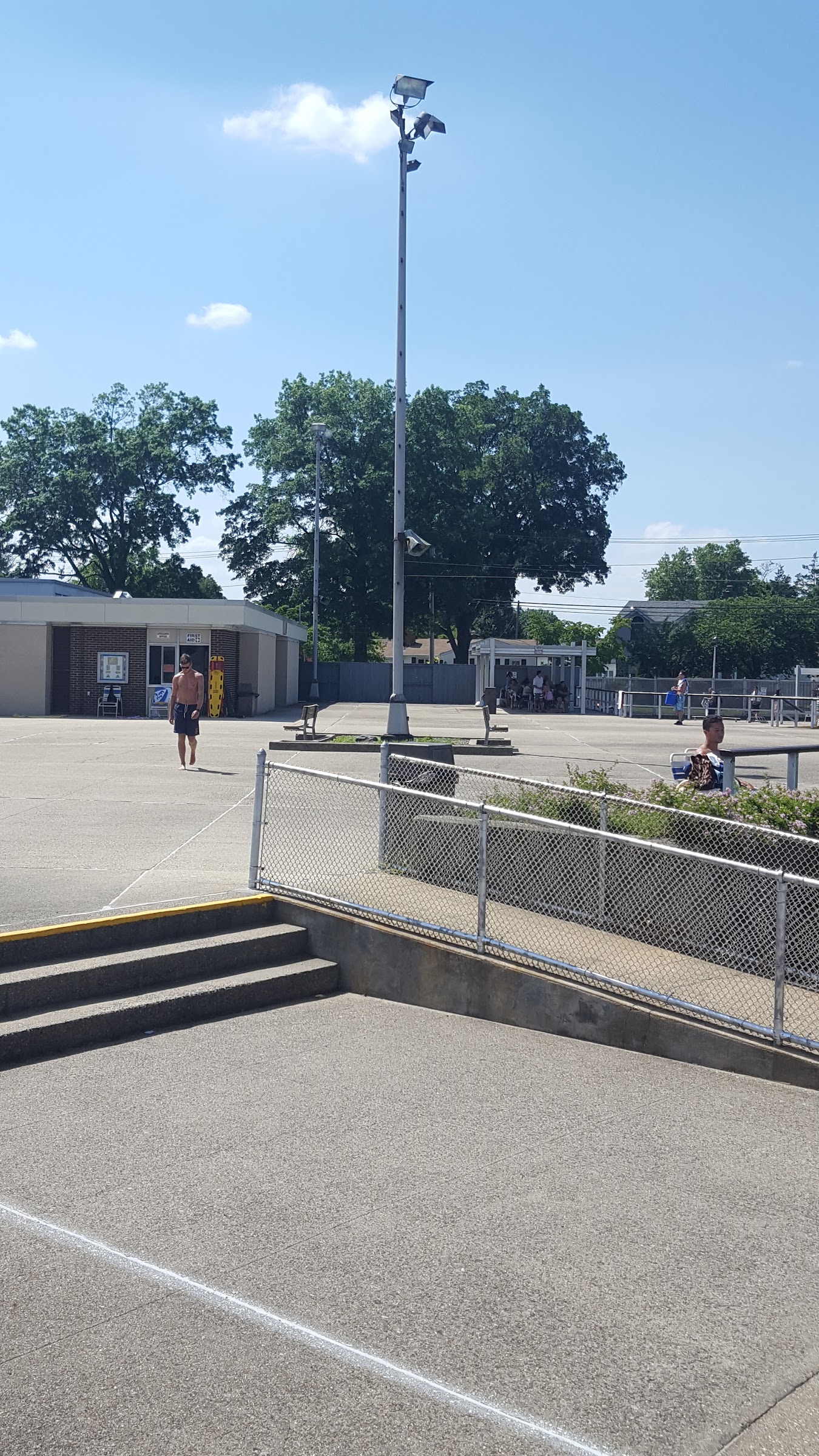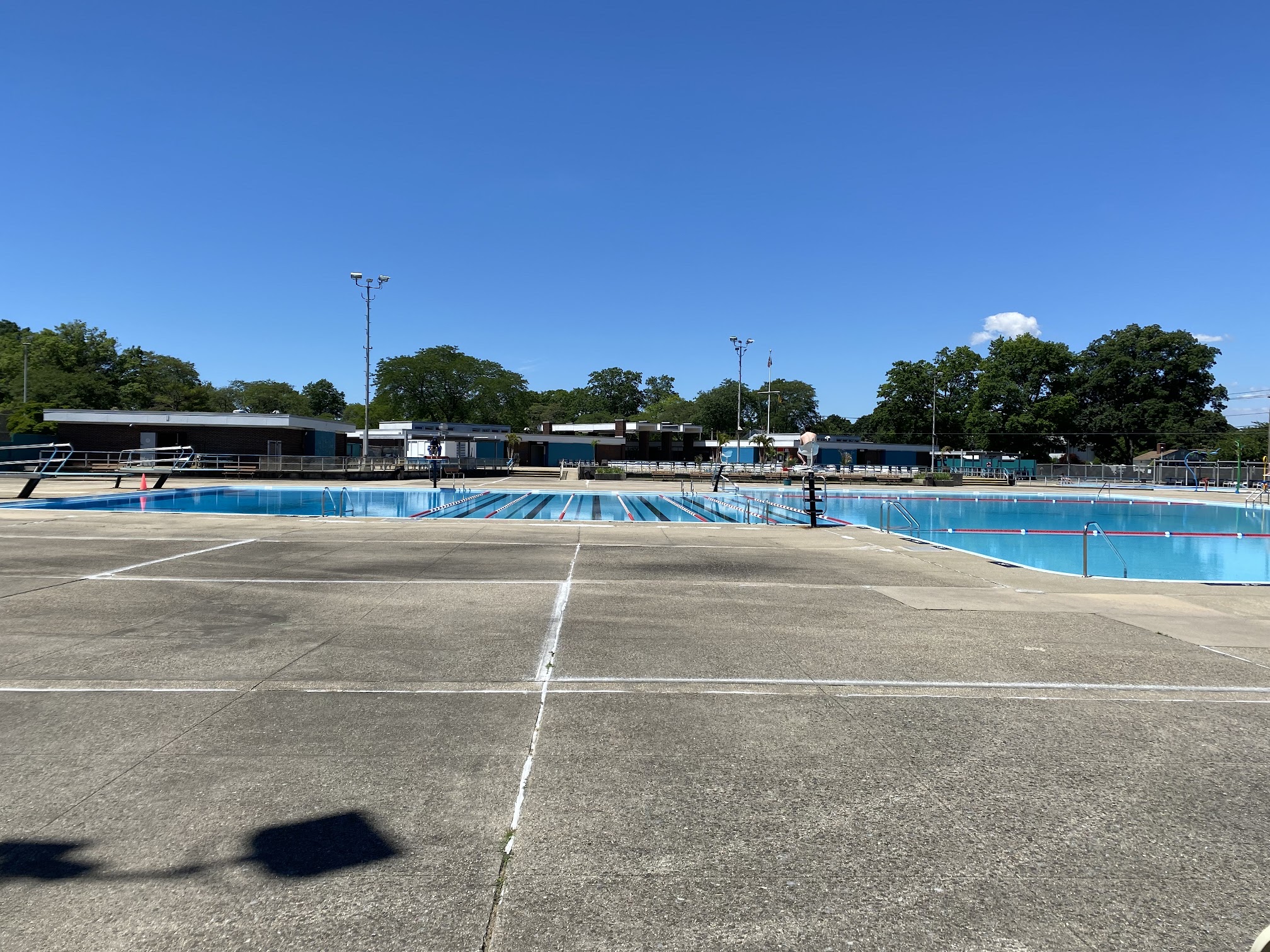 Small pool for the kids, shaded area with seats, vending machines, free cold water stations to fill up your bottles, free sun screen, diving board. Pizza and 7/11 just 5 minute walk. Life guards to watch the kiddies. I drive from Brooklyn to come out here for a nice day with the baby.