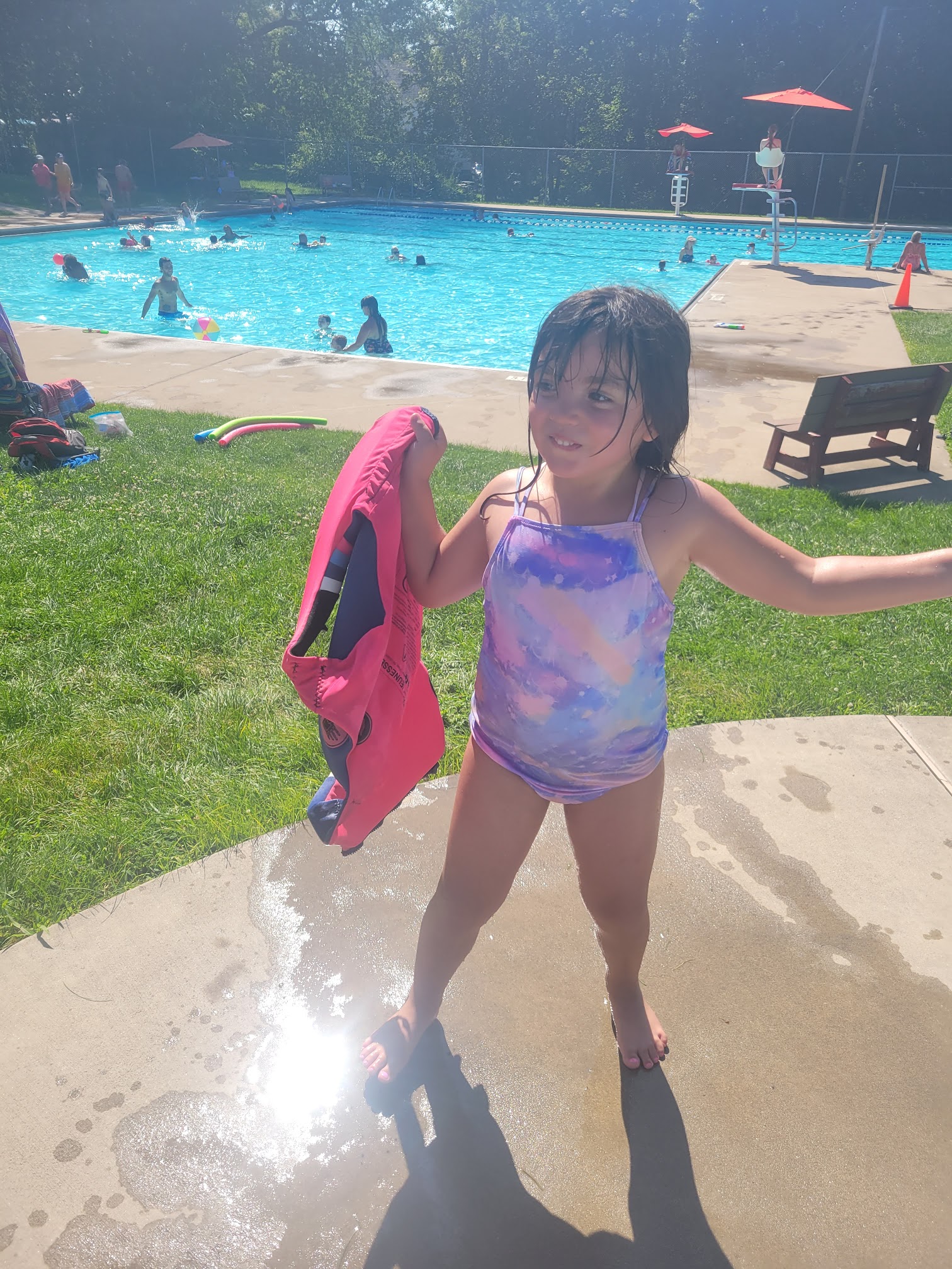 I always enjoy the pool. It's close to my house , opened at 10 a.m. most of the summer, and they provide umbrellas and lounge chairs which is convenient. They have the splash pad for the little ones, and a kiddy pool as well. The only downside is the pool only goes up to about 5 1/2 feet. Most older kids and adults like to swim in deeper water . But this pool works fine for me . Also you have to bring your own food which we do, the concession stand only has drinks , snacks and ice cream.