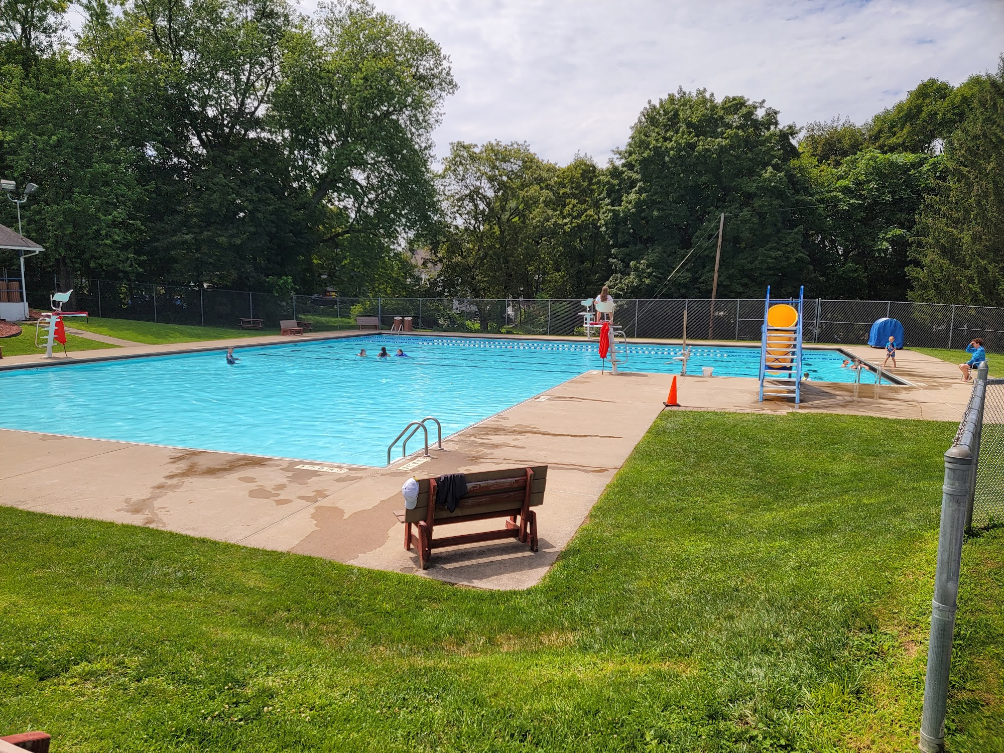 What are people saying (AI review summary)? The pool generally receives mixed but largely positive feedback. Patrons often praise its spaciousness, uncrowded conditions, and family-friendly amenities, which include splash pads, kiddie pools, and a slide. Many appreciate the attentive lifeguards, convenient hours (typically 10 am to 7 pm during summer), and provided amenities like umbrellas and lounge chairs. While some enjoy the playful and engaging teen staff, common drawbacks include the main pool's relatively shallow depth (around 3-5.5 feet), which may not appeal to those desiring deeper water, and limited concessions (only drinks, snacks, ice cream), requiring visitors to bring their own food. A significant negative review highlighted concerns about dirty pool water, bugs, poor rule enforcement, and potential for rashes, recommending immediate rinsing after swimming. Operational details include a mid-June opening, Labor Day closing, and a slight increase in membership fees.