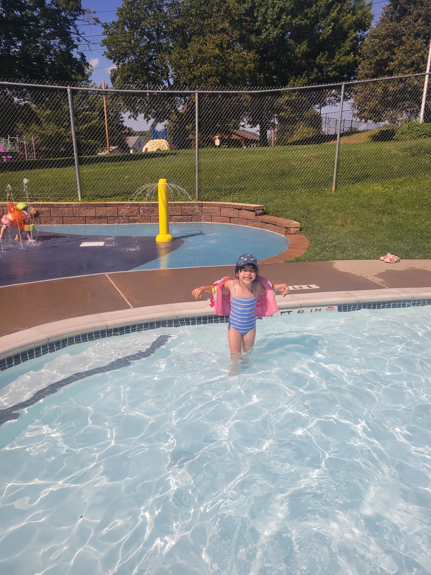 Beautiful and roomy. It was not too crowded, especially early in the afternoon. Even if it were, there's plenty of room to spread out. It goes from 3-4 feet, so it was a nice place for my 4-year-old, who could practice some skills while actually being able to touch bottom. The kiddie area is really nice. Very large baby pool with seat that is perfect for adults. Nice splash pad, too. Kids love the slide. Bonus - you are in for a karaoke treat lol. The teens working there enjoy their job, which is nice compared to the grumpy teens working elsewhere. They engaged with the swimmers through the speakers and treated us to their lovely singing voices lol 😆 hey, whatever. It adds a playful atmosphere. Also, I felt my kids were truly being watched. The lifeguards were attentive and moved themselves around to always have their eye on the action. In glad they enjoy their jobs.