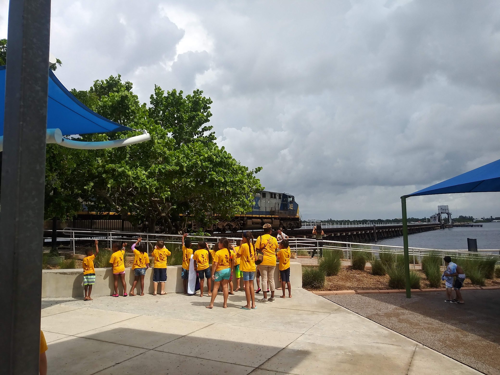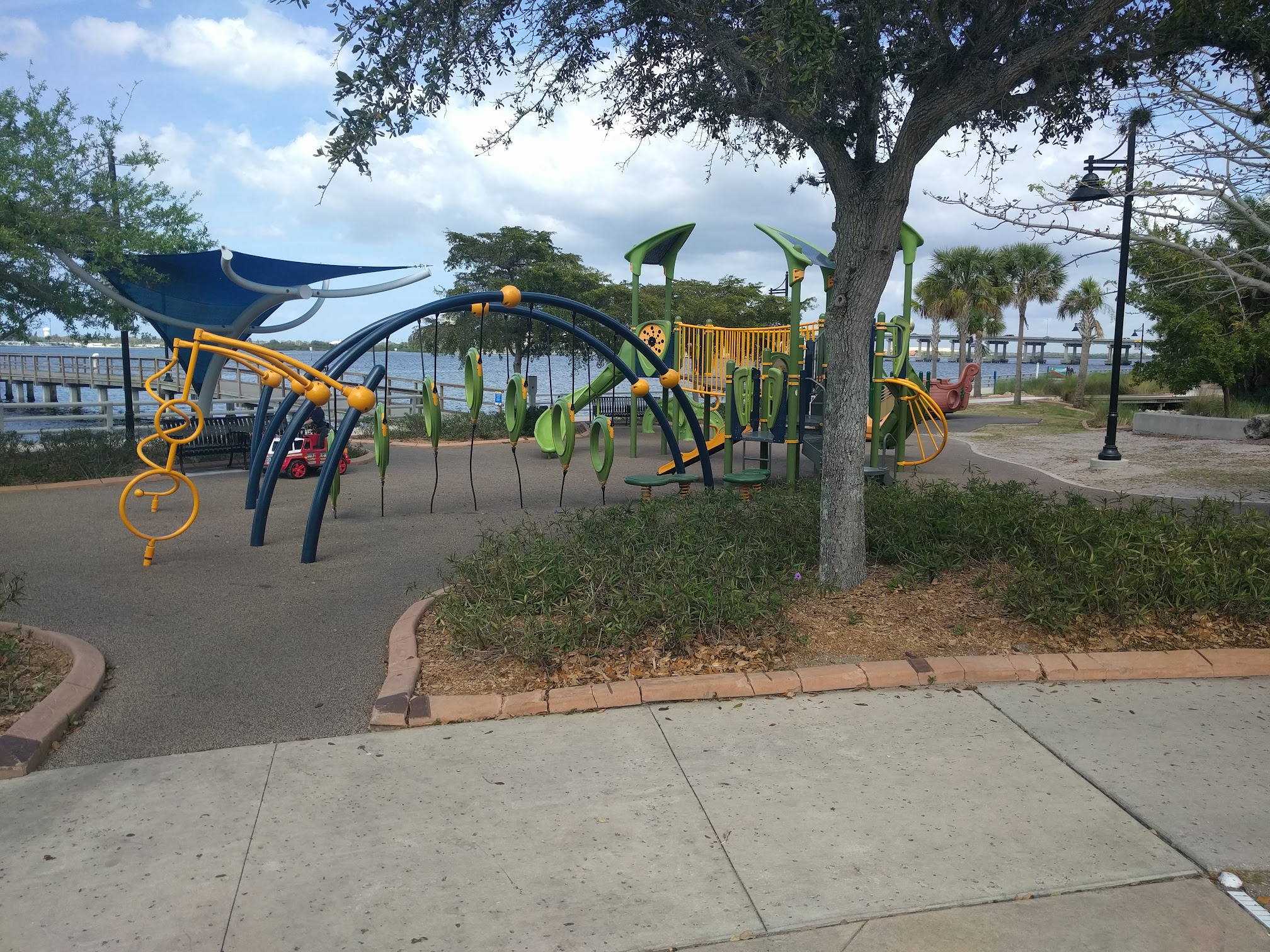 What are people saying (AI review summary)? The reviews offer a mixed but generally positive perspective on the park, noting its continuous improvement and describing it as 'awesome.' Visitors appreciate amenities such as a splash pad, shaded areas, Astro turf, and riverwalk access, with one even spotting a dolphin. There is strong praise for the dedicated maintenance staff who work tirelessly daily to clean up significant amounts of trash left by visitors, despite the park sometimes appearing very dirty due to public inconsideration. However, a major negative point raised was the closure of all restrooms during a busy period, causing significant inconvenience and raising public health concerns, leading one reviewer to suggest the park should be closed until repairs are made.
