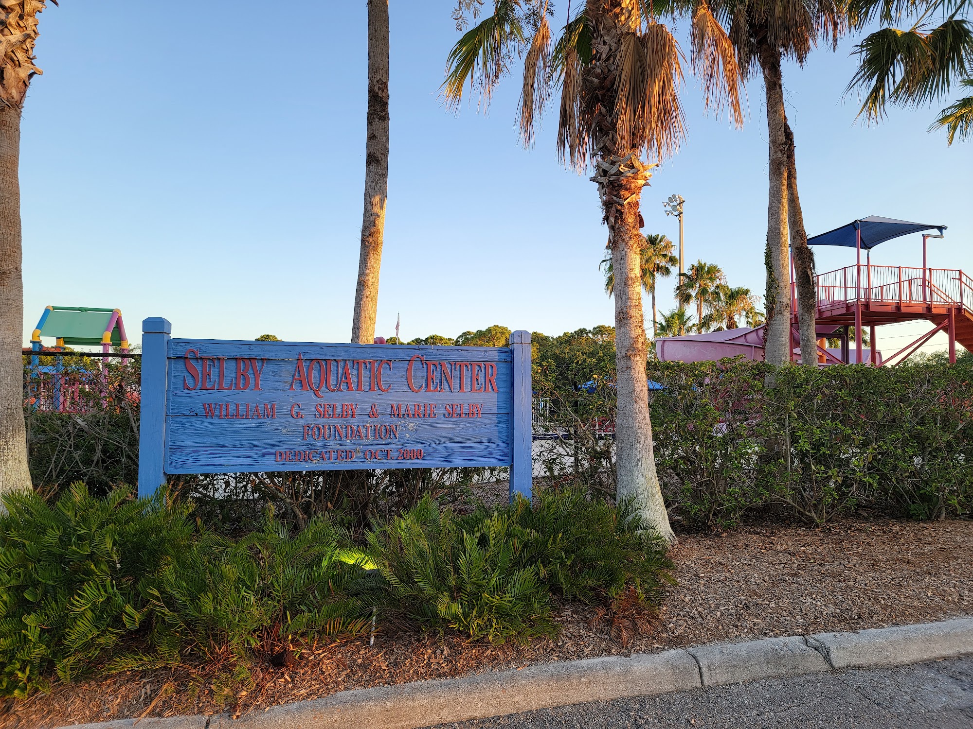 Excellent outdoor facility with two pools for lane swimming including a 50 m pool. 6 lanes 25 yards long and 8 lanes 50 m long. Soon, there will be a third pool. Sea water, clean, 78F year around water temperature. Warm showers and lockers. Excellent programs including Swim Masters in the morning plus open swim Monday through Saturday 11:00-1:00 for $8 each time or $75 per month. There is no better swimming facility in Sarasota.