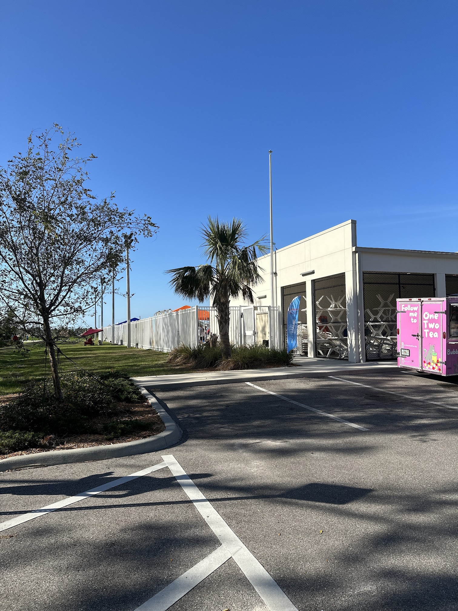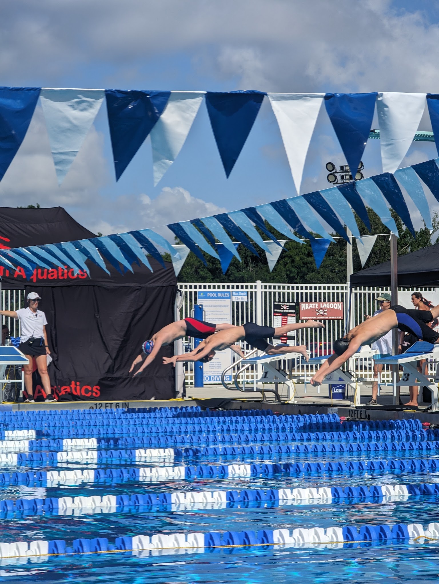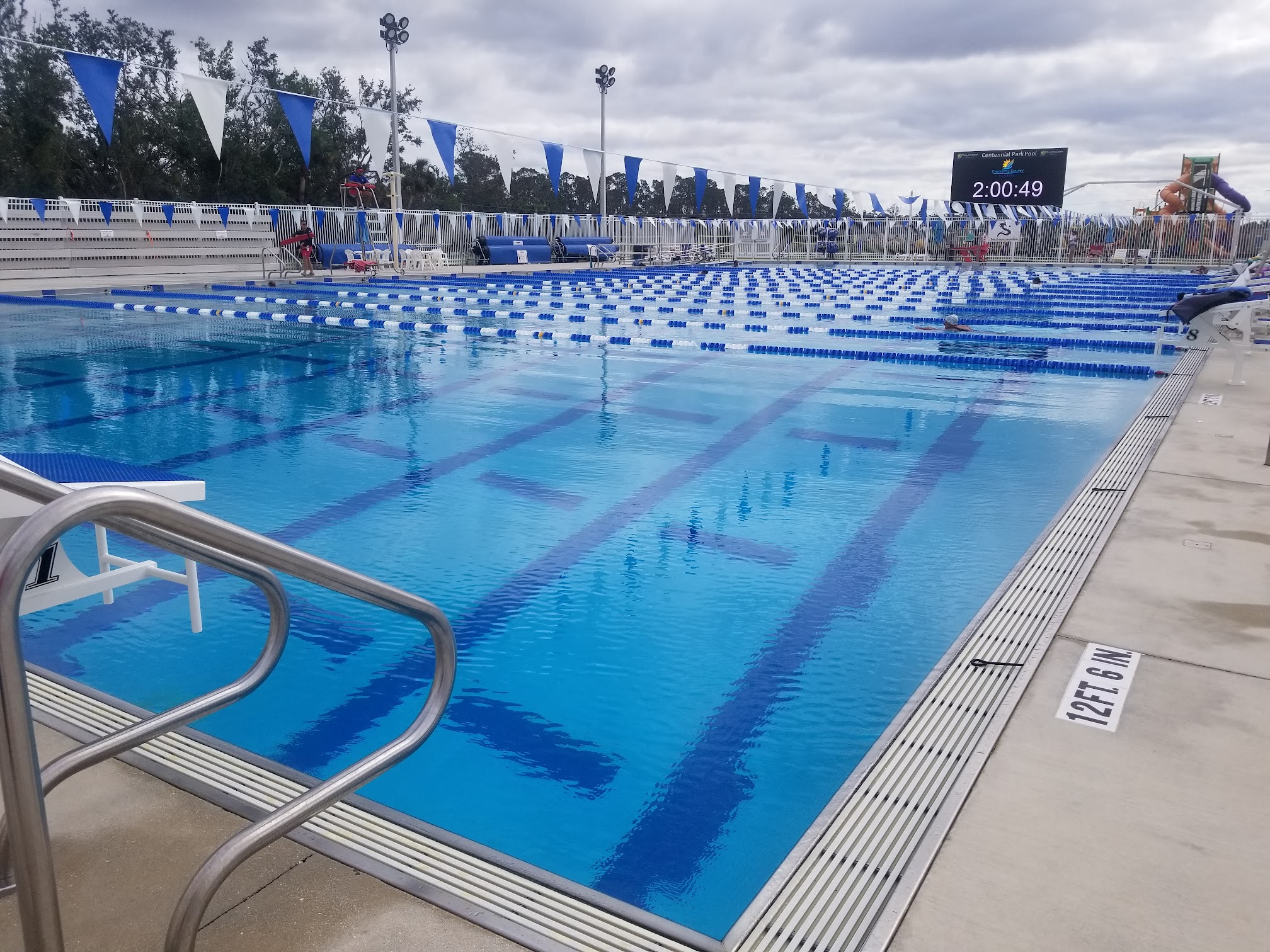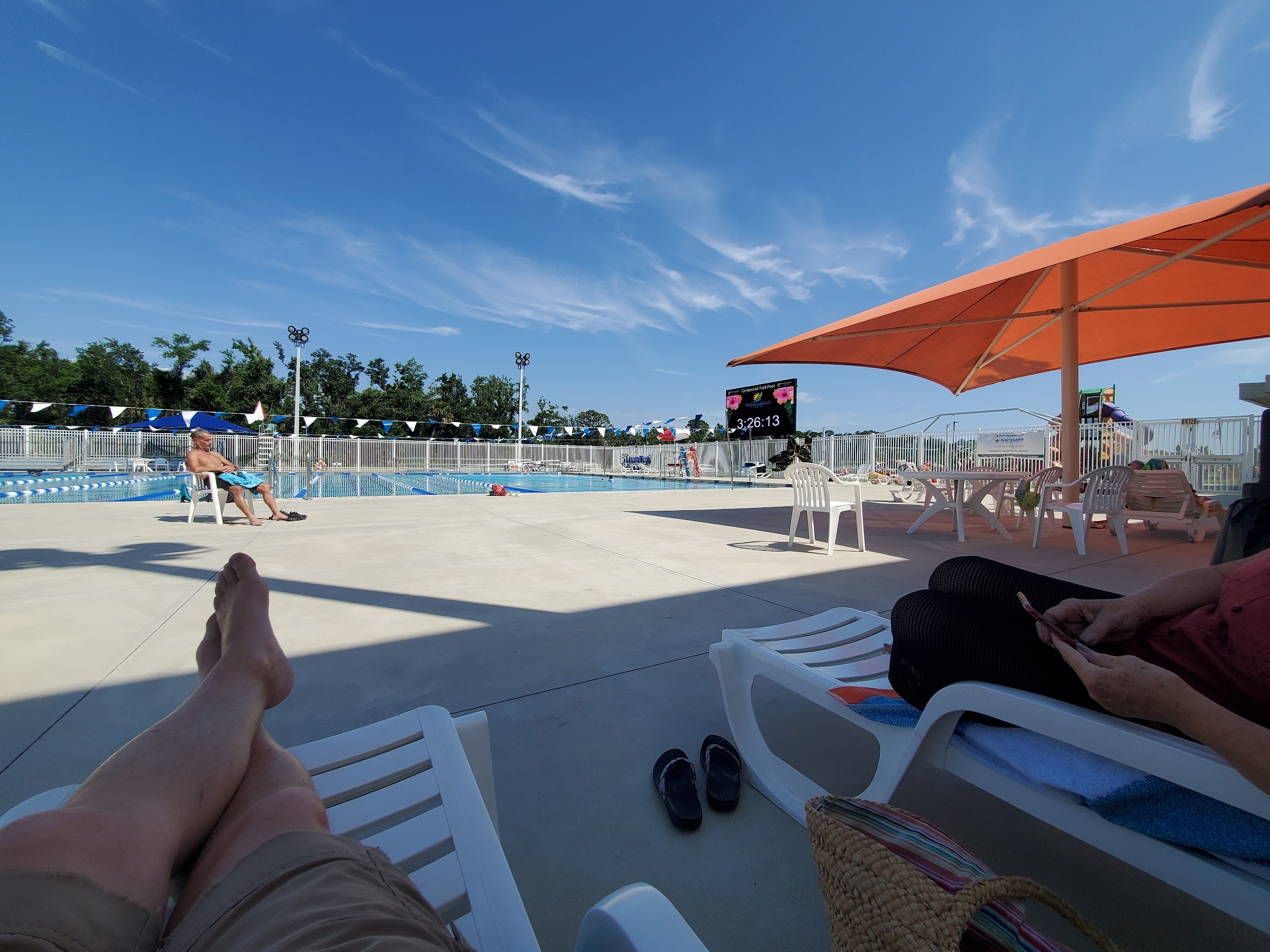 We love this hidden gem in Charlotte Co. Water is regulated at a cool 82. Pool large enough where you aren't on top of each other and there are always plenty of tables and chairs under huge umbrellas. You can bring noodles and float in the 12' end, or water walk in shallow end. $3 for the whole day.