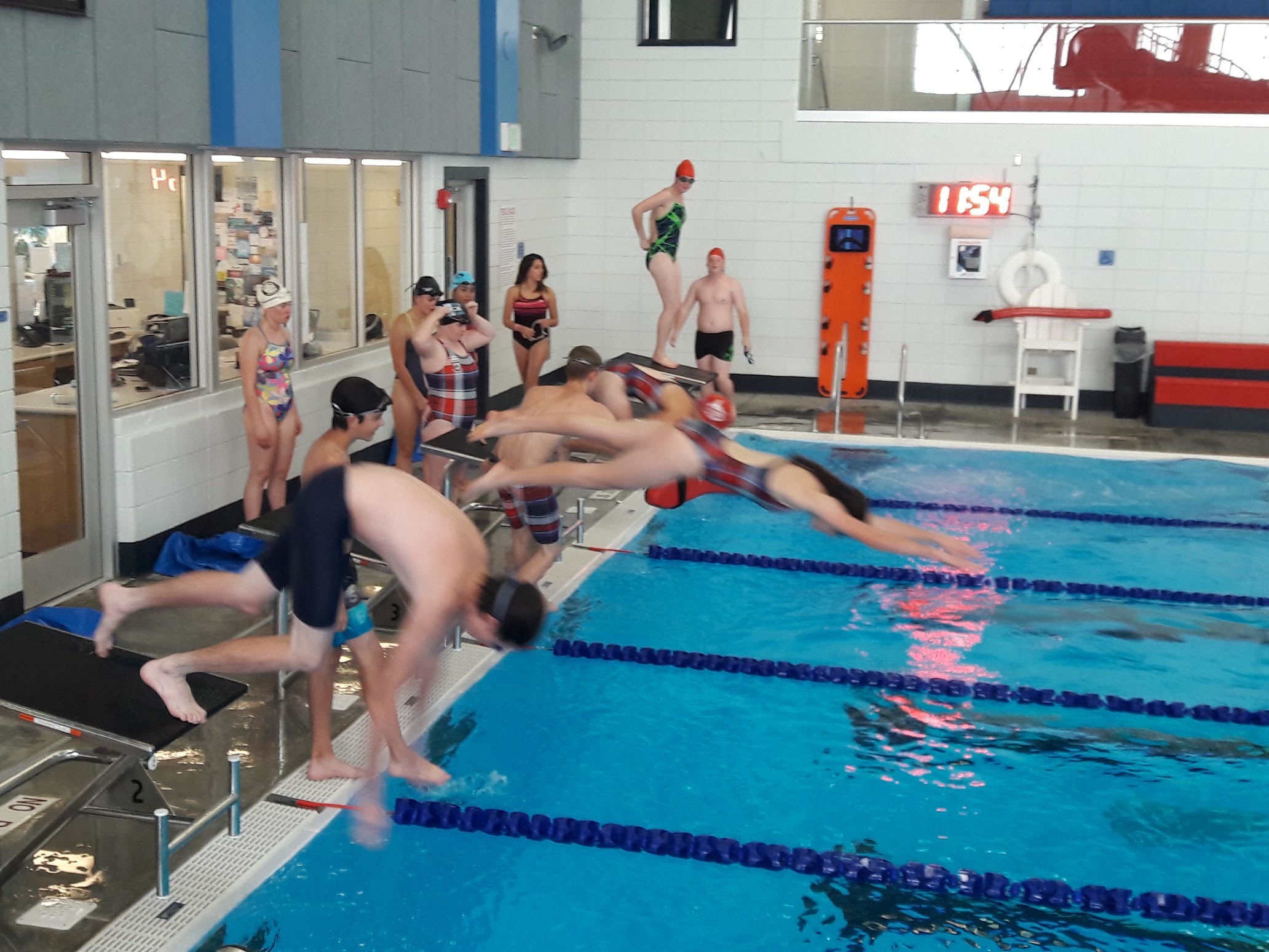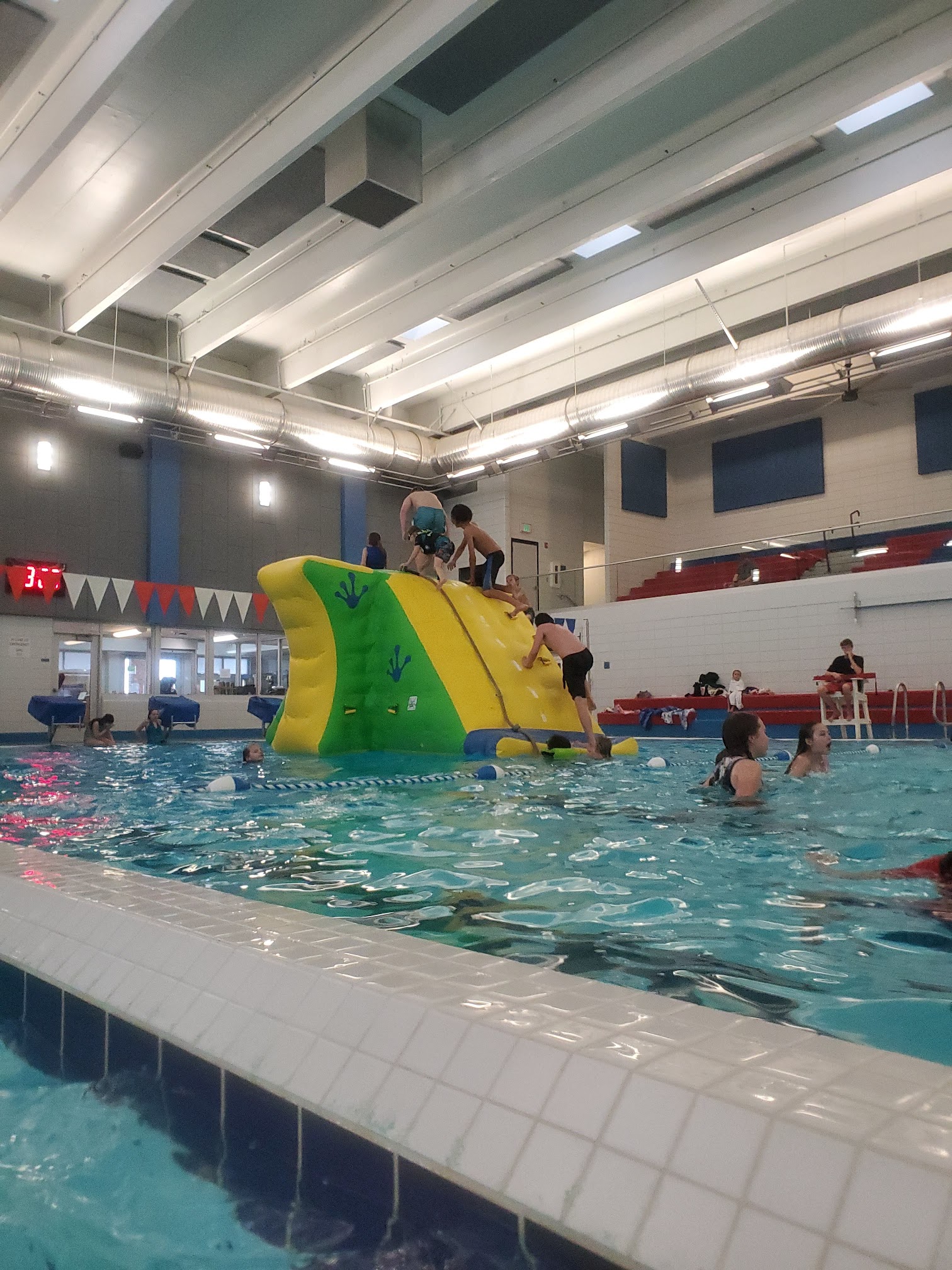 High-school community pool featuring a slide, swimming lessons and a relaxed vibe.