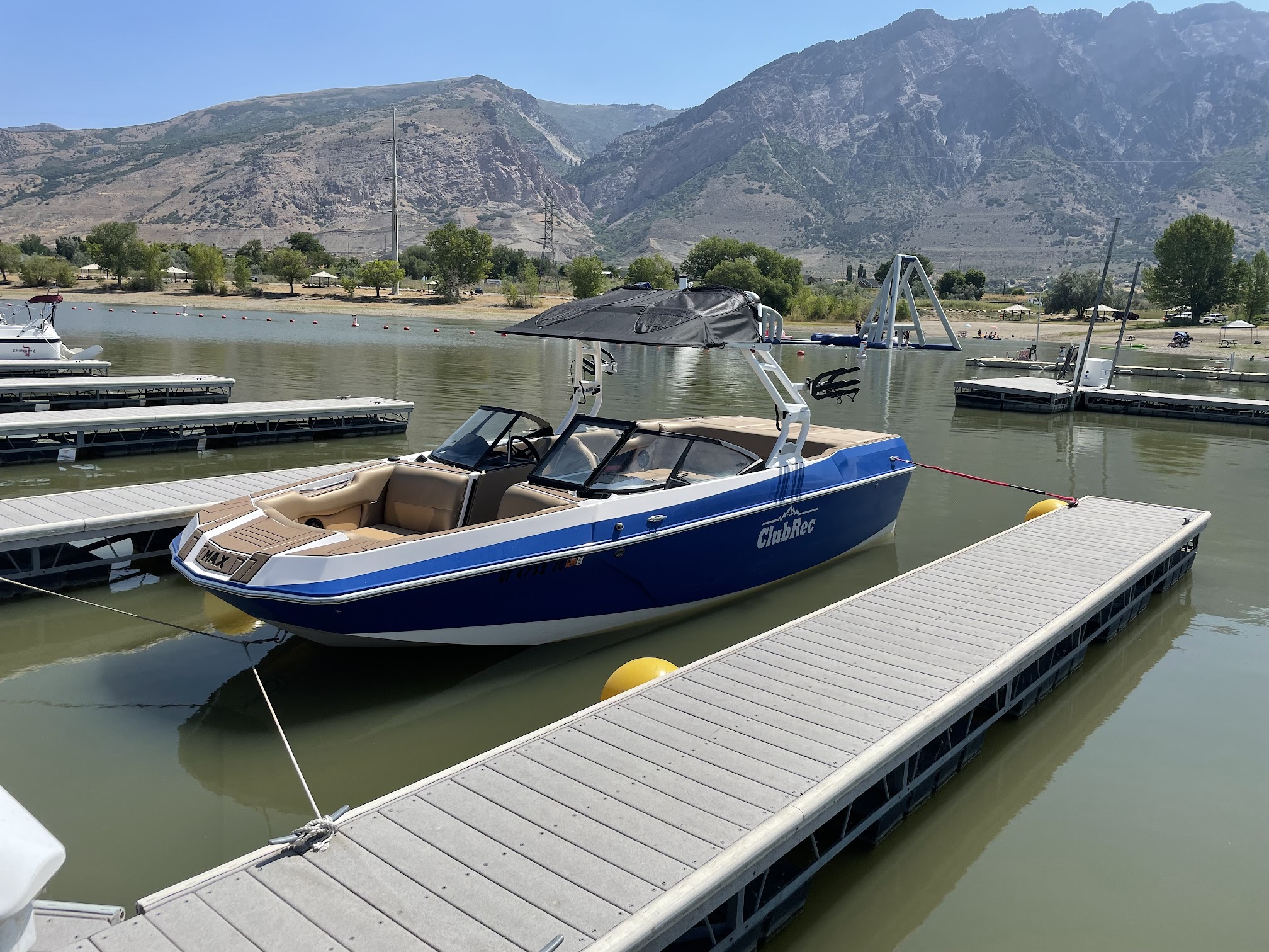 Water-sports center offering boat, jet-ski, kayak, and canoe rentals, plus an inflatable water park.