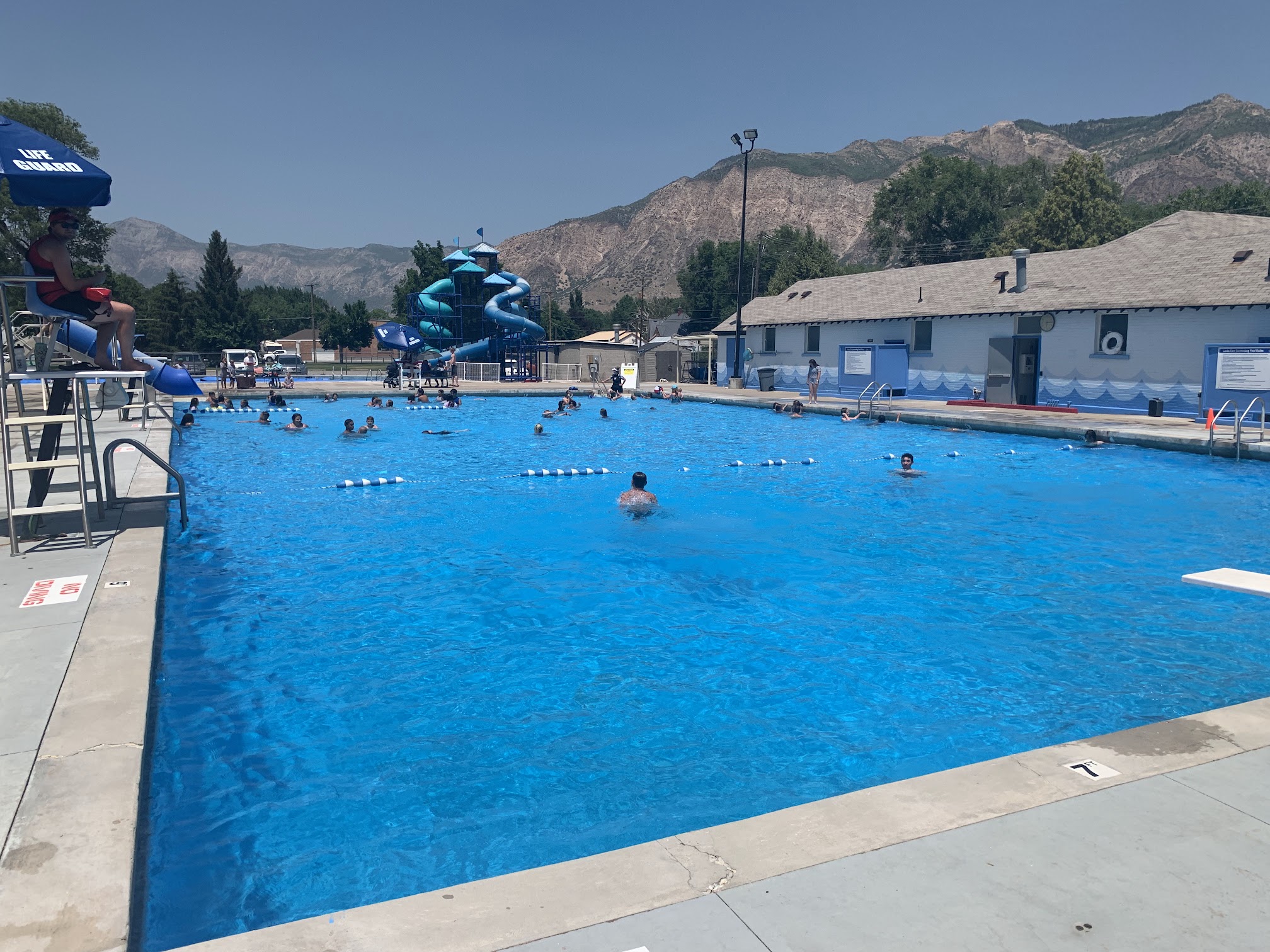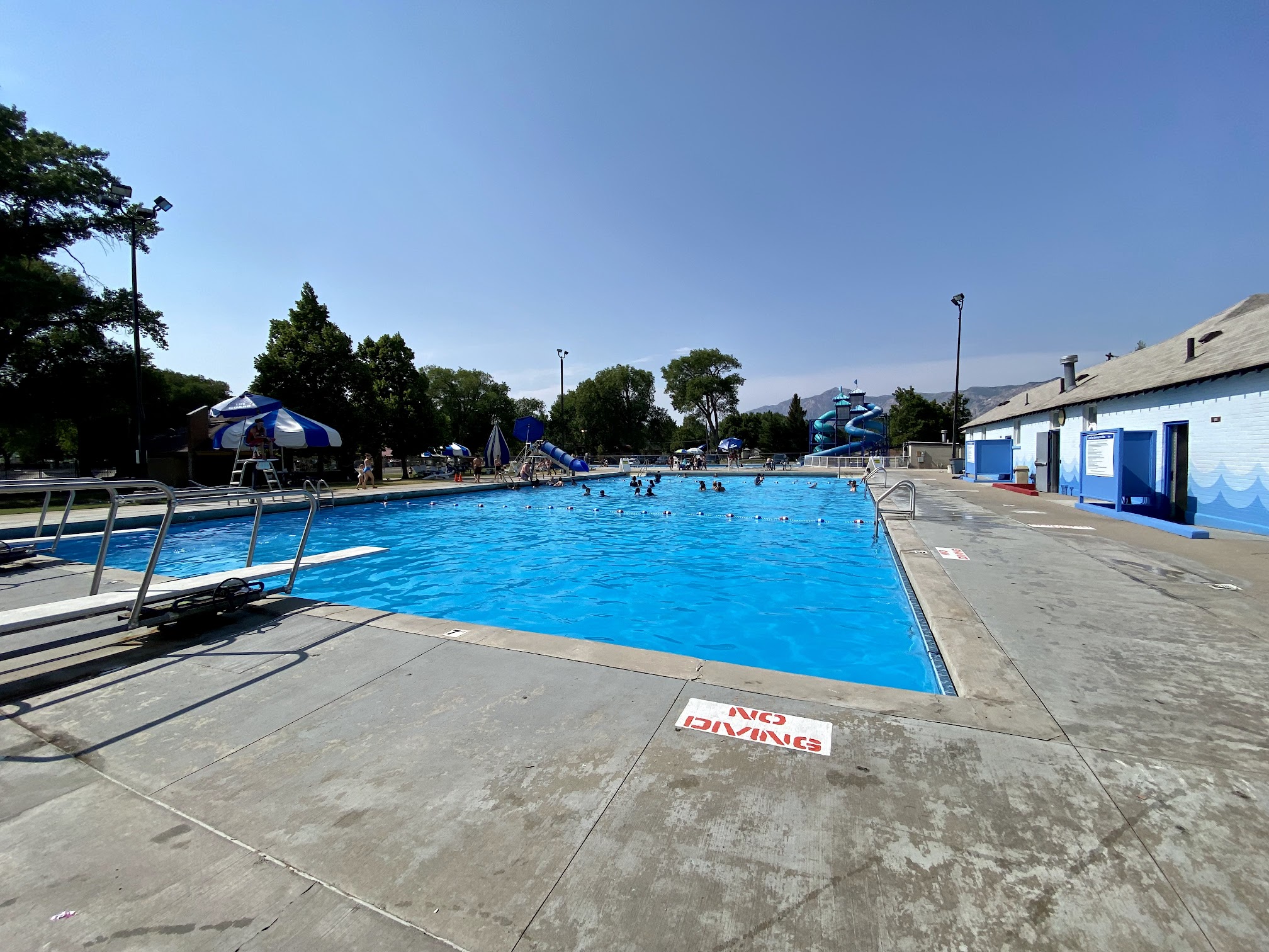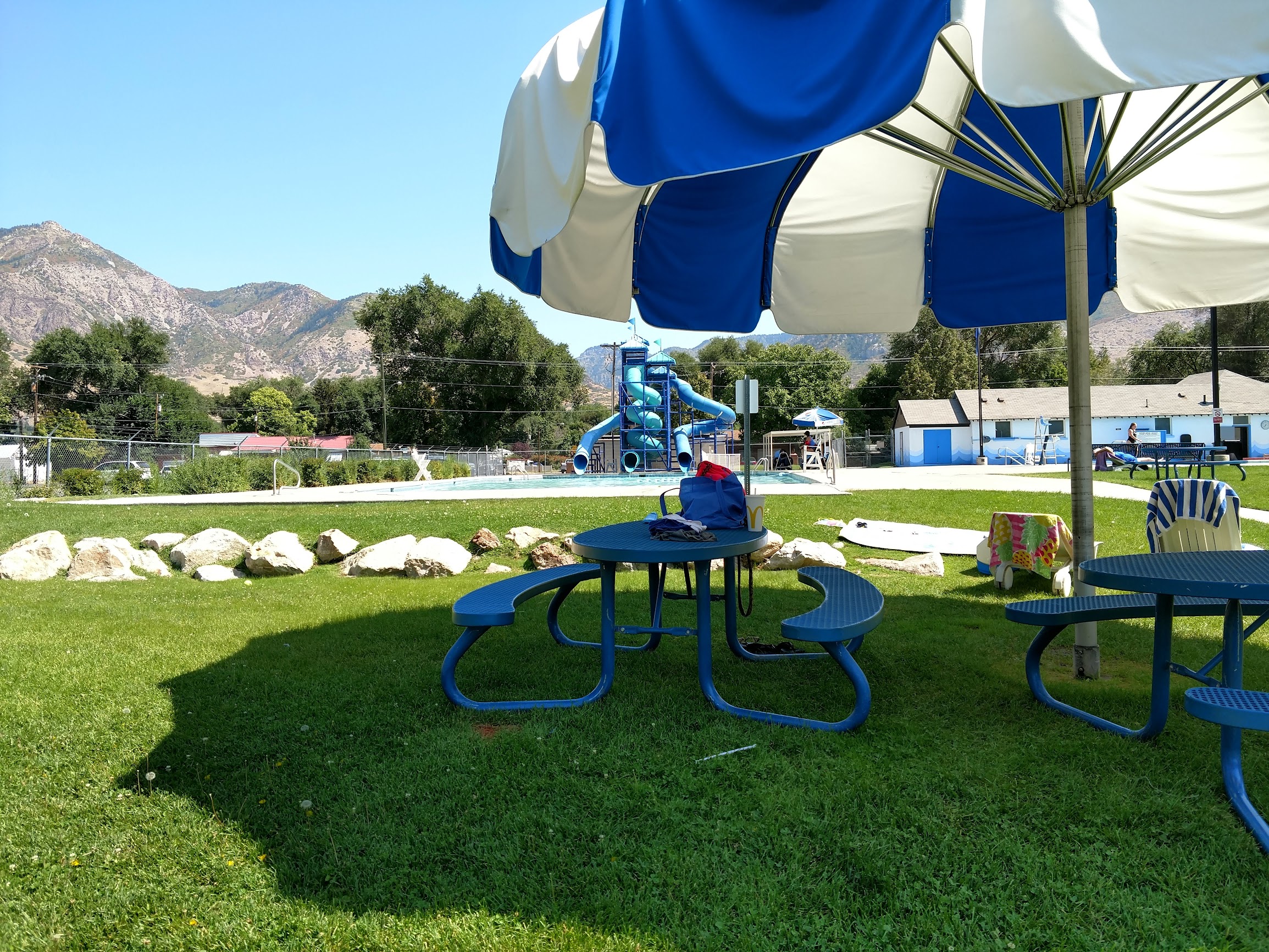 I grew up down the street. This place is an institution here in ogden 3 slides! Multiple pools. Lots of shade and chairs. Unfortunately, most food items were out of stock. Ultimately, it's a great place. Getting day drunk there is pretty fun too. 🤟