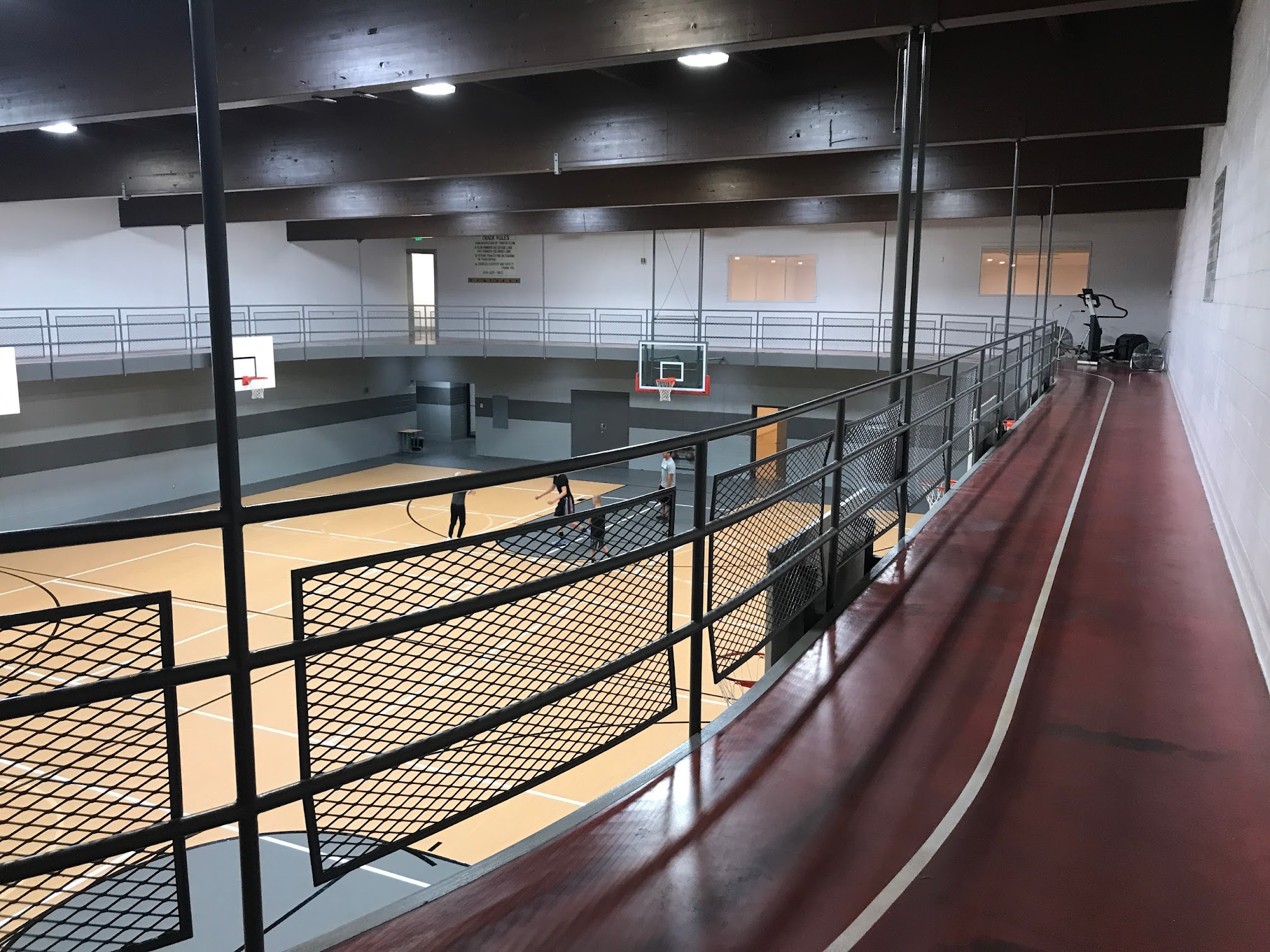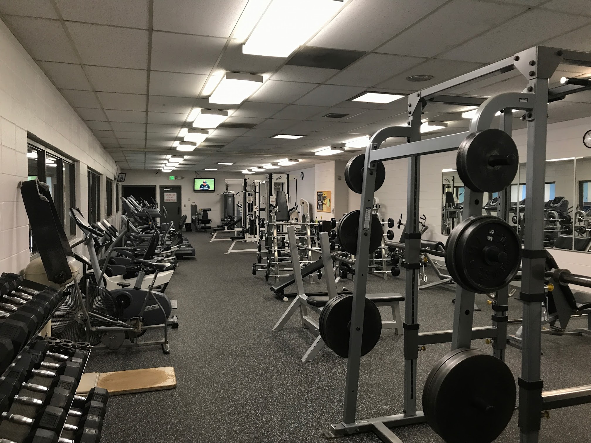 Recreation center with a pool, weight room, basketball court, and areas for racquetball and pickleball.