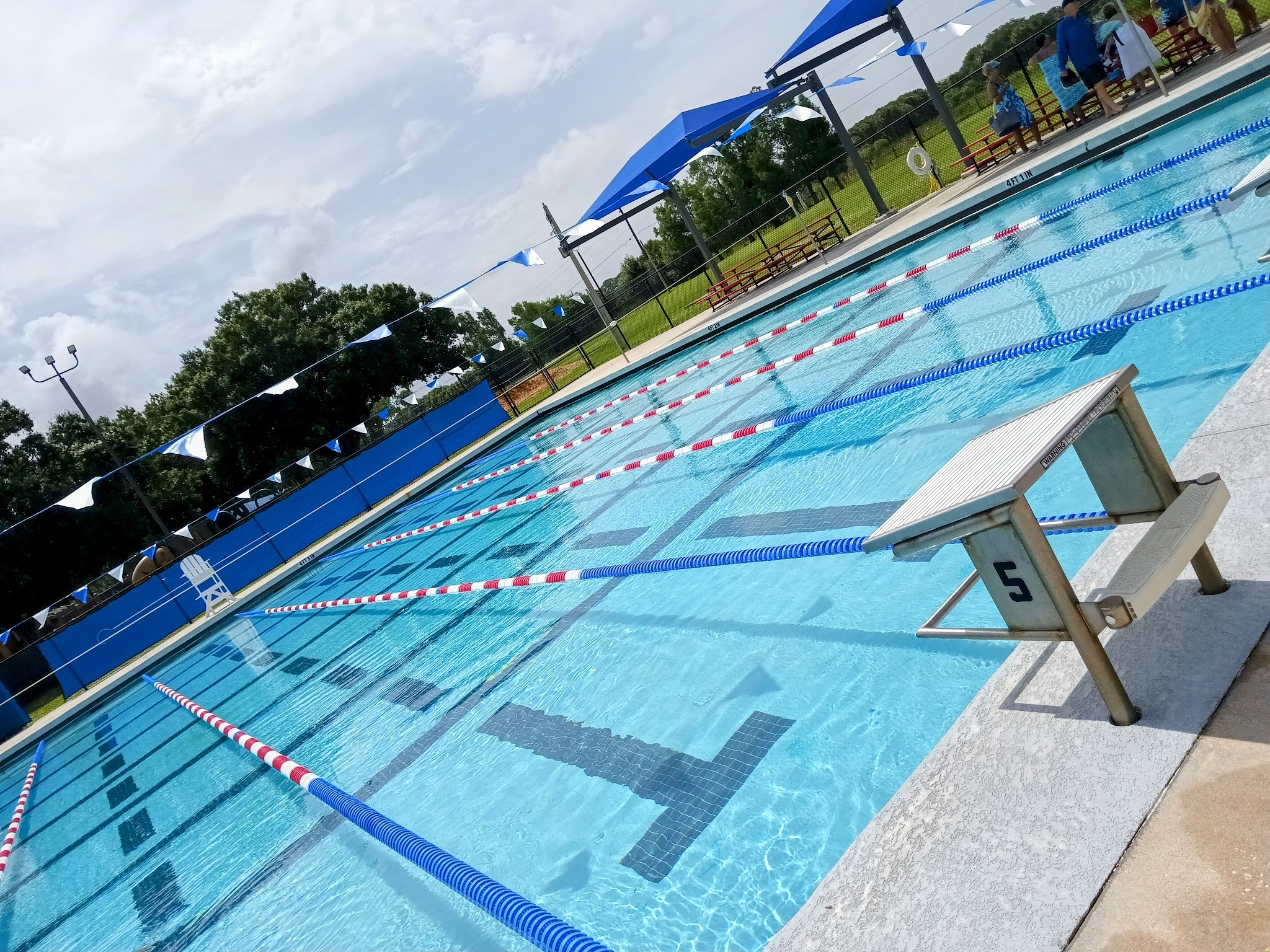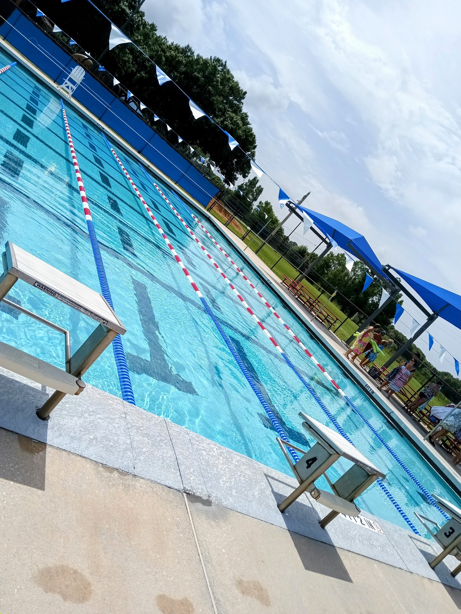 Don't get me wrong the pool was nice and fun but the communication with the life guards is terrible. Someone had given my mom a bottle of water while we were at the pool which was nice but when she went to drink it the life guard 50 ft away blew her whistle and started yelling across the pool of several screaming children. Couldn't hear a word she said. My mom thought it mightve been her for the water so she backed up a couple feet and tried again. Whistle and yelling from the same life guard and my mom was confused so I asked one of the 2 life guards that was 10 ft away from us and they told us what she was saying. My mom got up and went to the sitting area to drink. Although this was inconvenient, it did not bother us. What bothered us was when the life guard that was yelling from 50 feet away got up, walked around the entirety of the pool to speak to the other 2 life guards and then walked all the way around to relay some message similar to "keep an eye on those ones" because they spent the next 2 hours staring at us like we were going to something wrong again, just waiting to yell at us. It was only instance they had to speak to us, and yelling 50 ft from across the pool does not send the message. Also if you say no drinks near the pool and there's a life guard close they can explain that it needs to be 10 ft away or more instead of spending the next 2 hours hawk eyeing you. Meanwhile there's a kid nearby that has been told several times to stop jumping off the steps (against the rules) by the life guards with no consequences (and continued to do it for 3+hrs). Just because someone can't hear you and you haven't explained the 10 ft away rule does not mean you have to mean mug a family for 2 hours straight.