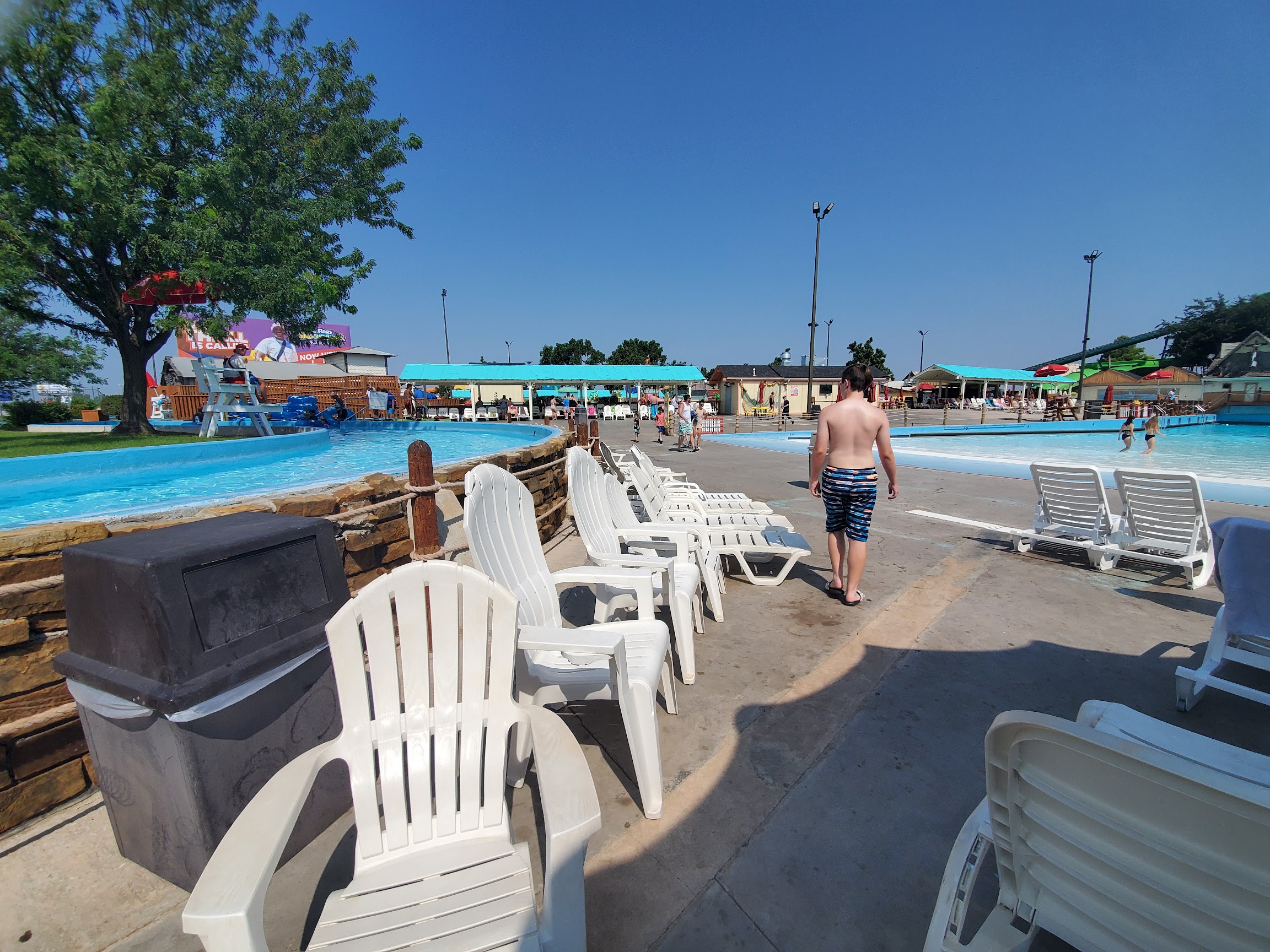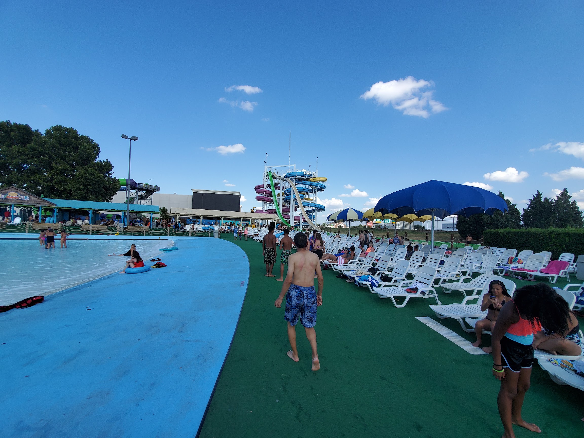 Not likely to come back. Lifeguards didn't really do much, barely any tubes at all the slides (and lazy river), no shade (all concrete), and terrible location. Sandwiched between a busy highway and the city's garbage truck parking lot... And I mean just a few feet from the highway with nothing separating you except a chain link fence with razor wire. Felt like I spent the entire day waiting for a tube and then waiting in line just to go down a rusted tube. Asked a lifeguard about the lack of tubes and he said, "Yeah, I know." They'd sit there and offer you a kid tube so you would leave them alone and you'd then wait in line for 30 minutes to be turned away at the top of a slide tower for having the wrong tube... Watched it happen non-stop all day!!! Lifeguards totally checked out. Saw what I'm pretty sure was a drug deal go down... But maybe that's just Oklahoma? Cabana was nice and the servers there were great. The rest? Not good.