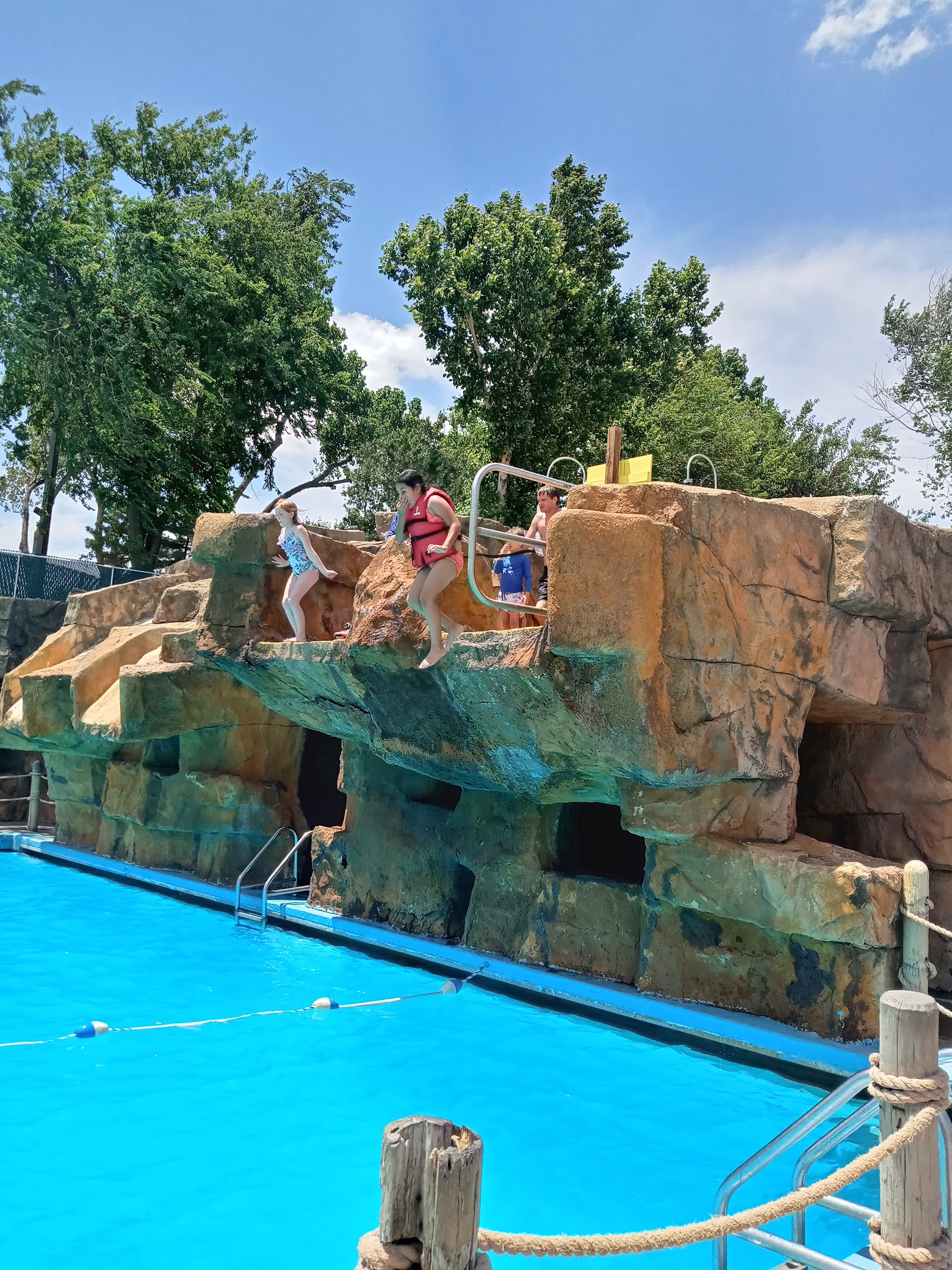 Lifeguards were fabulous and slides are great. Major problems with their food service. No organization, horrible service, and poor quality. Definitely not worth the money you spend on food or dining passes. Right out rude. 5 people standing around one person working. It took 3 people to clean up a small cheese spill with two of the three just standing there looking. Mishandling of food was also observed.