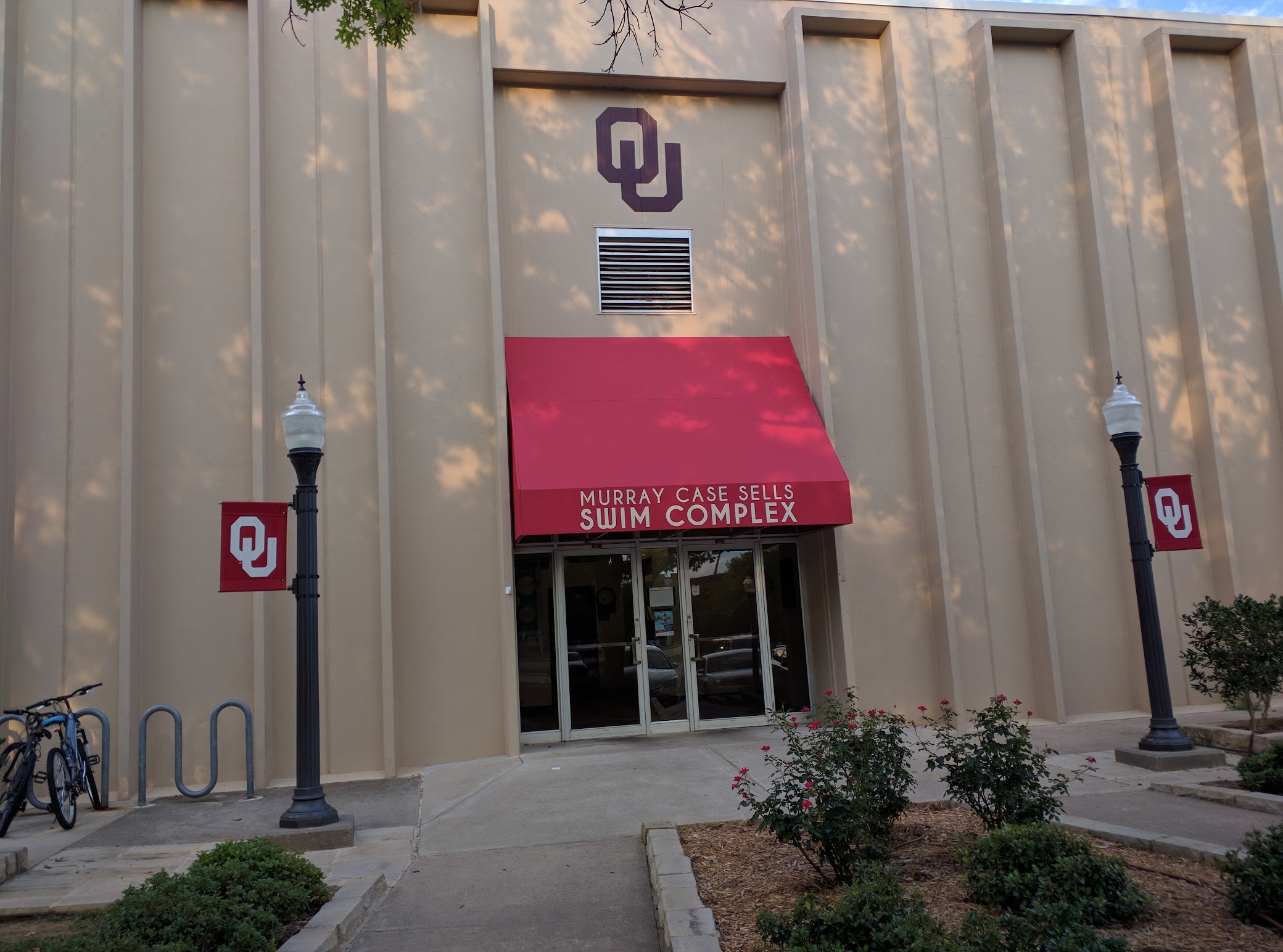 Indoor/outdoor aquatic facility at the University of Oklahoma with water aerobics classes.