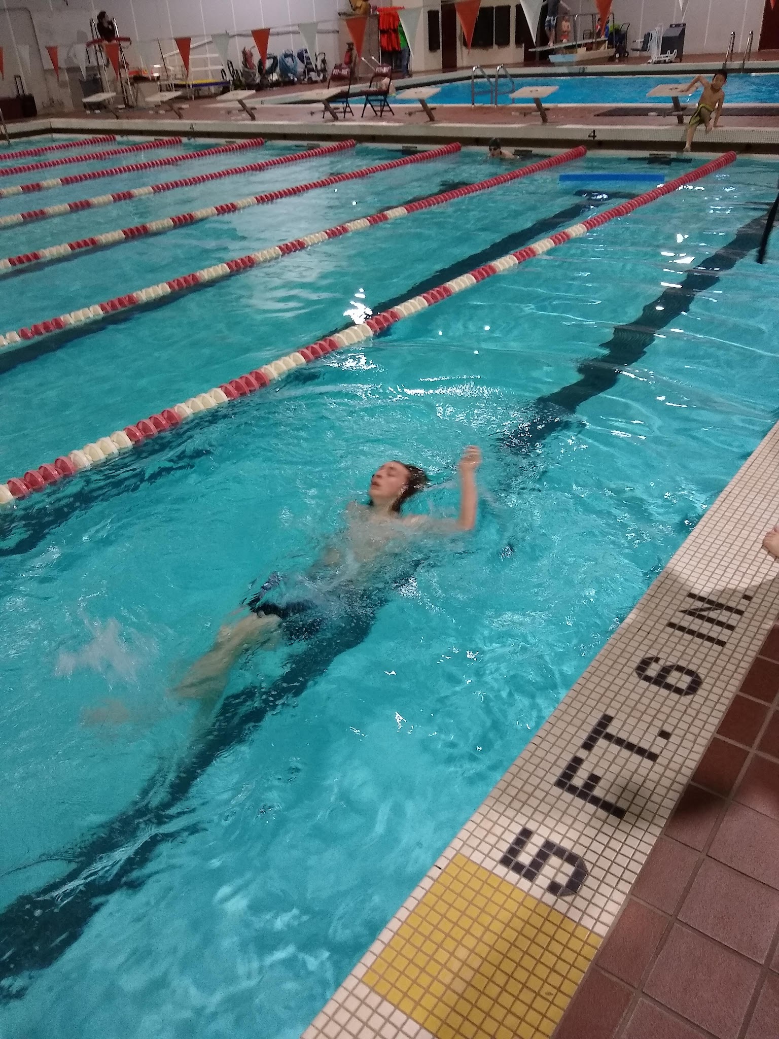 Nice pool but they need more fans and/or better circulation. I have COPD and have difficulty breathing between the heat and humidity. We go to see our granddaughter swim and we are very proud of our Sarah.