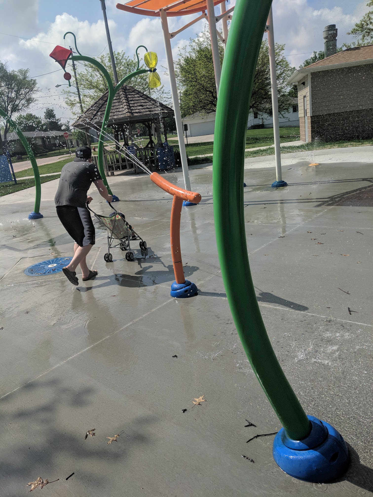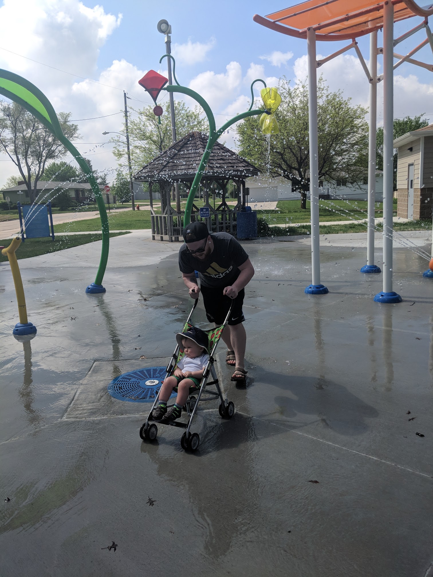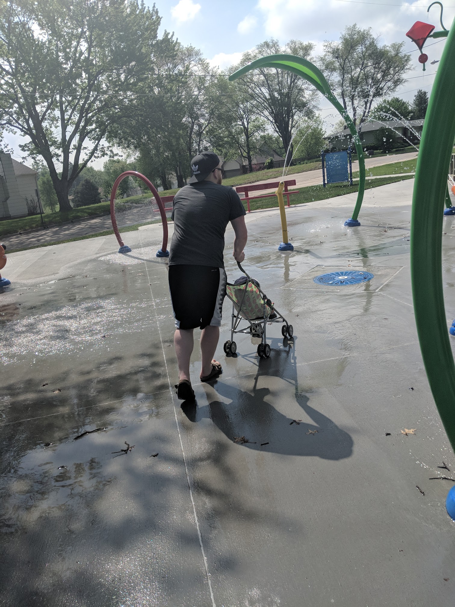 Really refreshing to stop and play in the water on our walk. Our son wasn't the biggest fan (yet), but he's only 1 and has only played in pools.