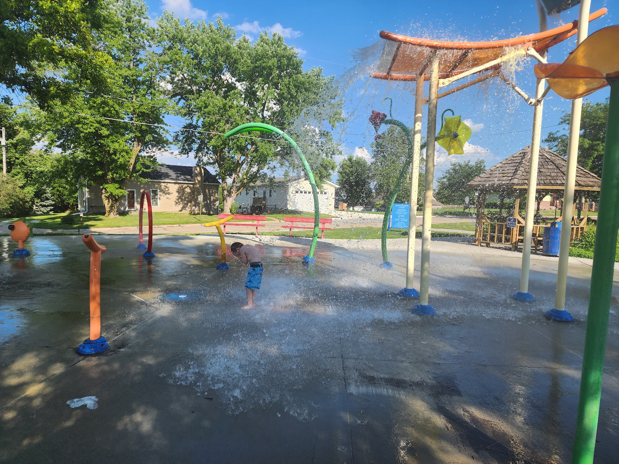 One of the best flashpads , i've been to out of all of omaha's , and all the free months since the rounding areas , this is the best and most fun splash pad so far. We go around to different ones all the time and check out.The newest flush pads the newest parks.And I don't know how old this one is.But we will for now on be driving out here from Omaha.Just for the splash pad a few times a year.