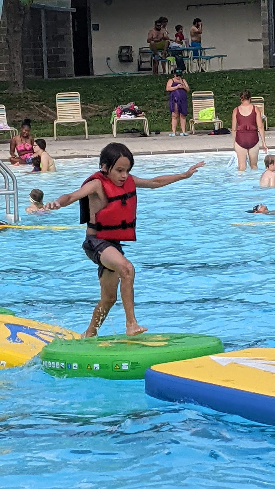 We love the zero depth entrance to the pool. It can sometimes be hard to climb out of the pool using the ladders. The family changing room was clean. If you could only do something about the sidewalks that feel like you're walking on hot lava. Lol