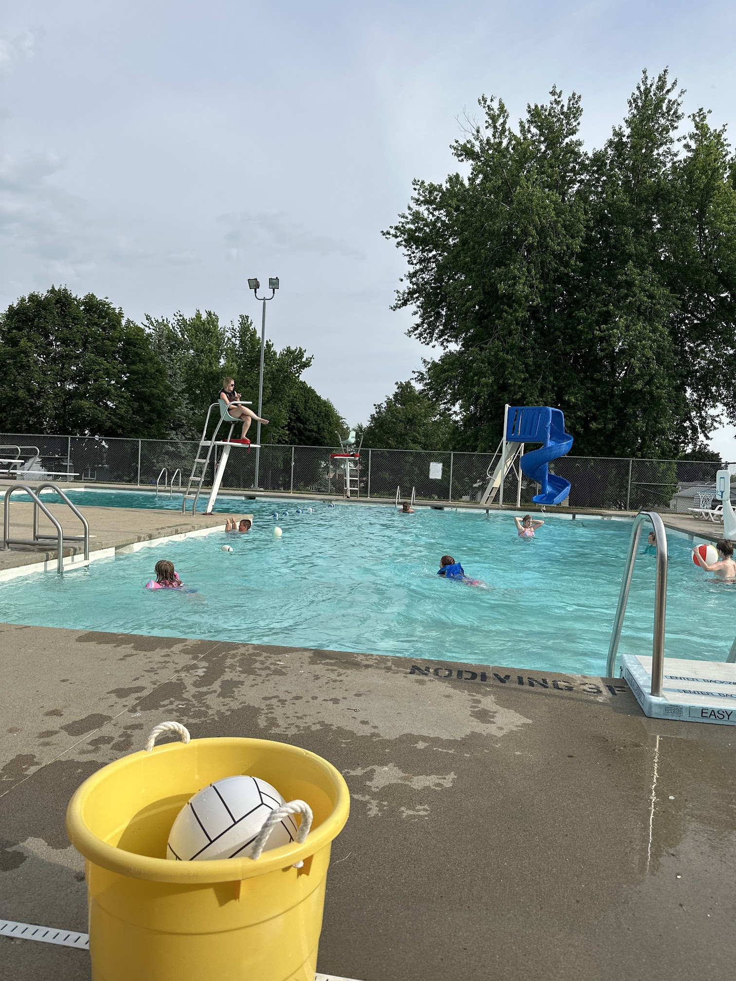 What are people saying (AI review summary)? This small town pool receives overwhelmingly positive reviews, often described as 'the best ever' and a 'great' place, particularly for kids. Reviewers highlight the friendly and nice lifeguards. Specific details provided include summer 2016 operating hours (M-F 1-5pm, 6-8:30pm; Sat 1-6pm; Sun 1-5pm, 6-8pm) and an adult day pass price of $3.50. The pool also offers views of people, water, concrete, and a nearby house.