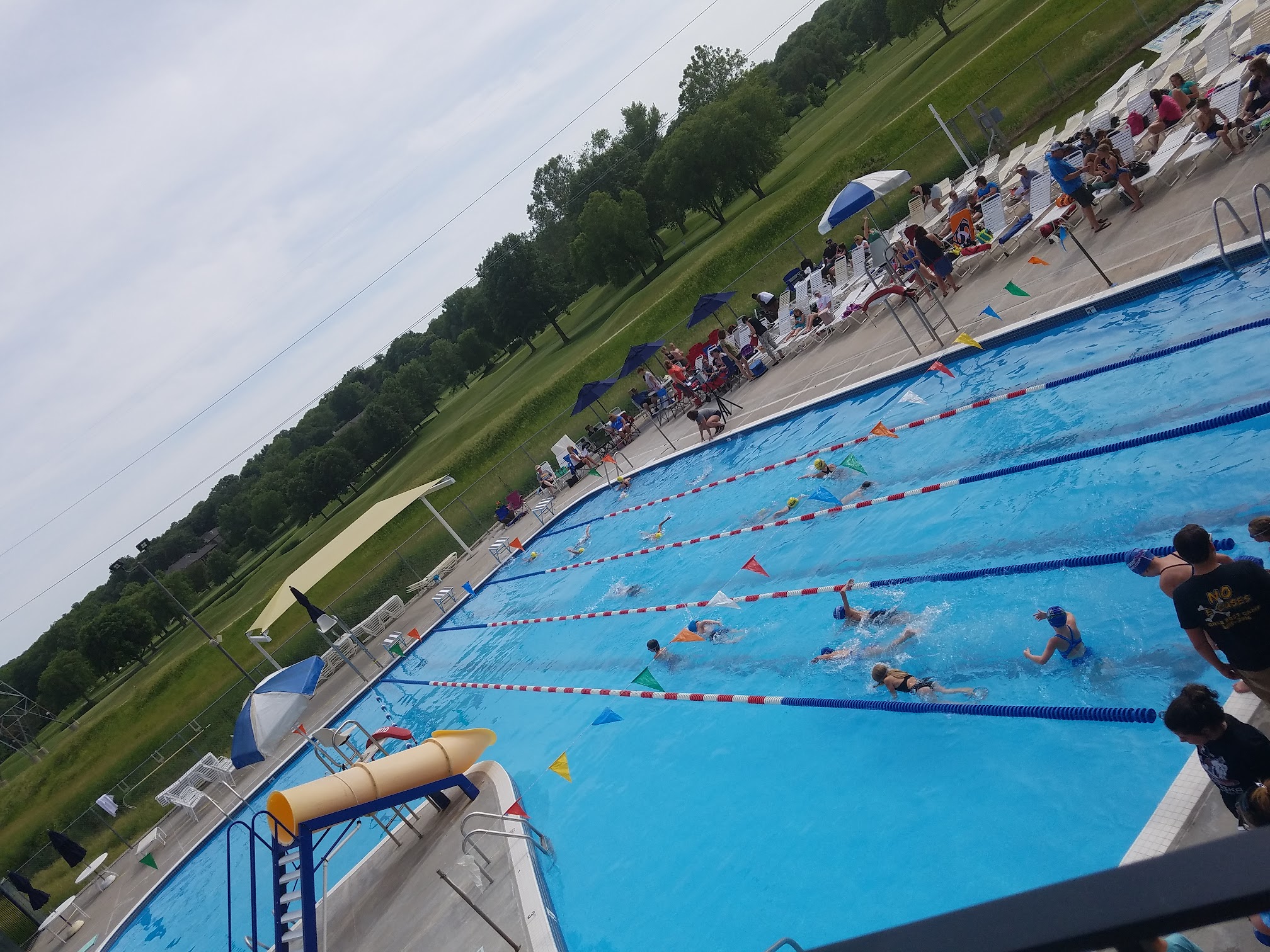 Family friendly, includes slide, basketball hoop, and diving board. Has a very nice baby pool and a snack shack with great options. The waiting list to become a member is very long but worth the wait. Membership doesn't expire until you cancel it.