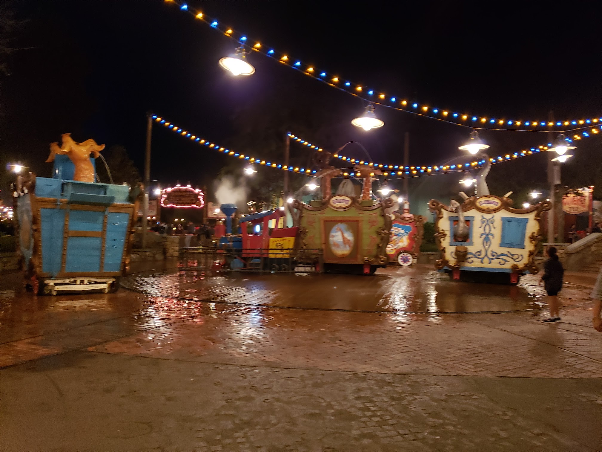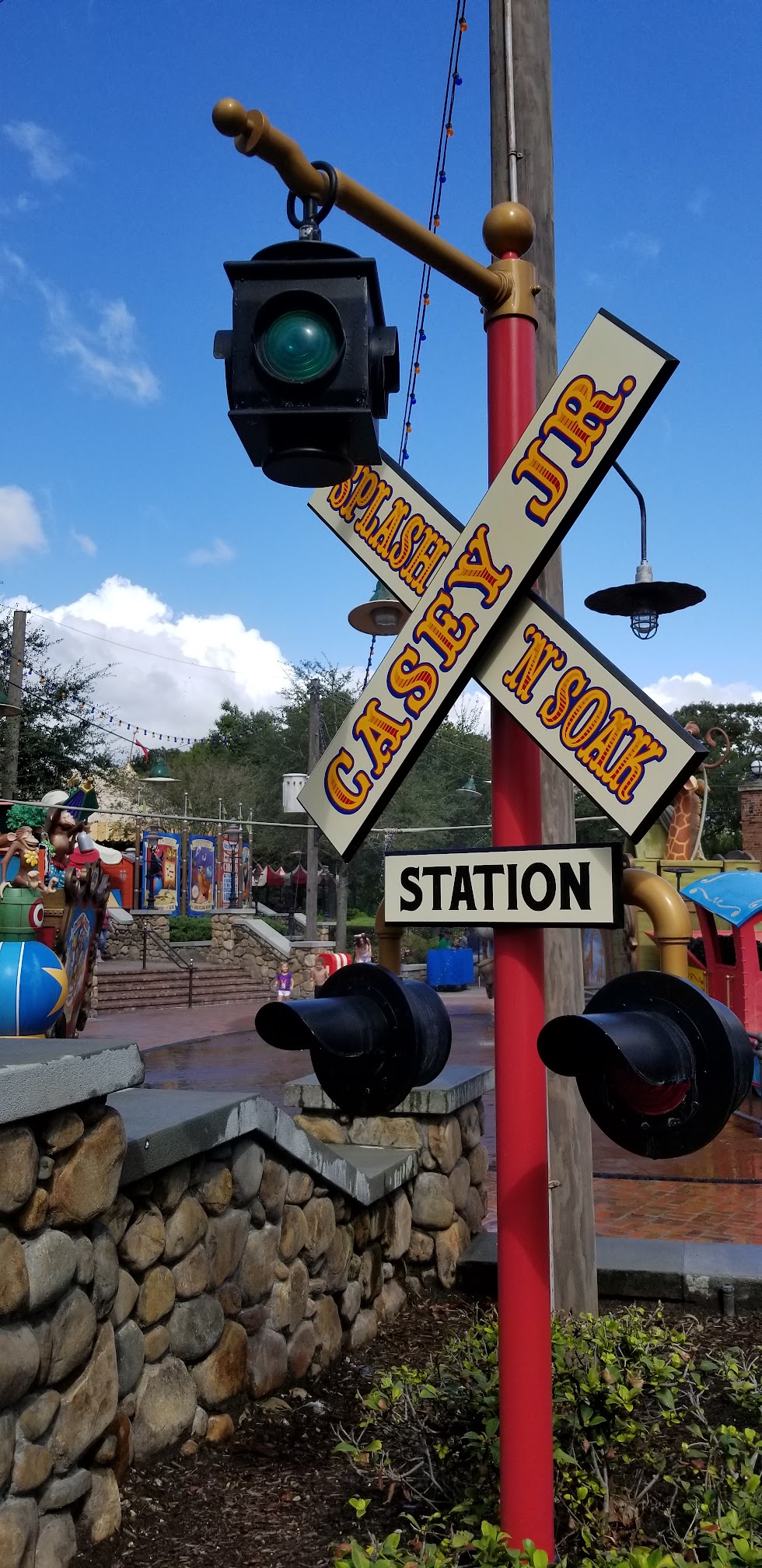 Casey Jr. Splash 'N' Soak Station, located in the Storybook Circus section of Magic Kingdom at Walt Disney World, is an interactive water play area. Inspired by the Casey Jr. train from Disney's Dumbo, it features fountains, water jets, and character elements, providing a fun and whimsical way for children and families to cool off and play in a circus-themed environment.