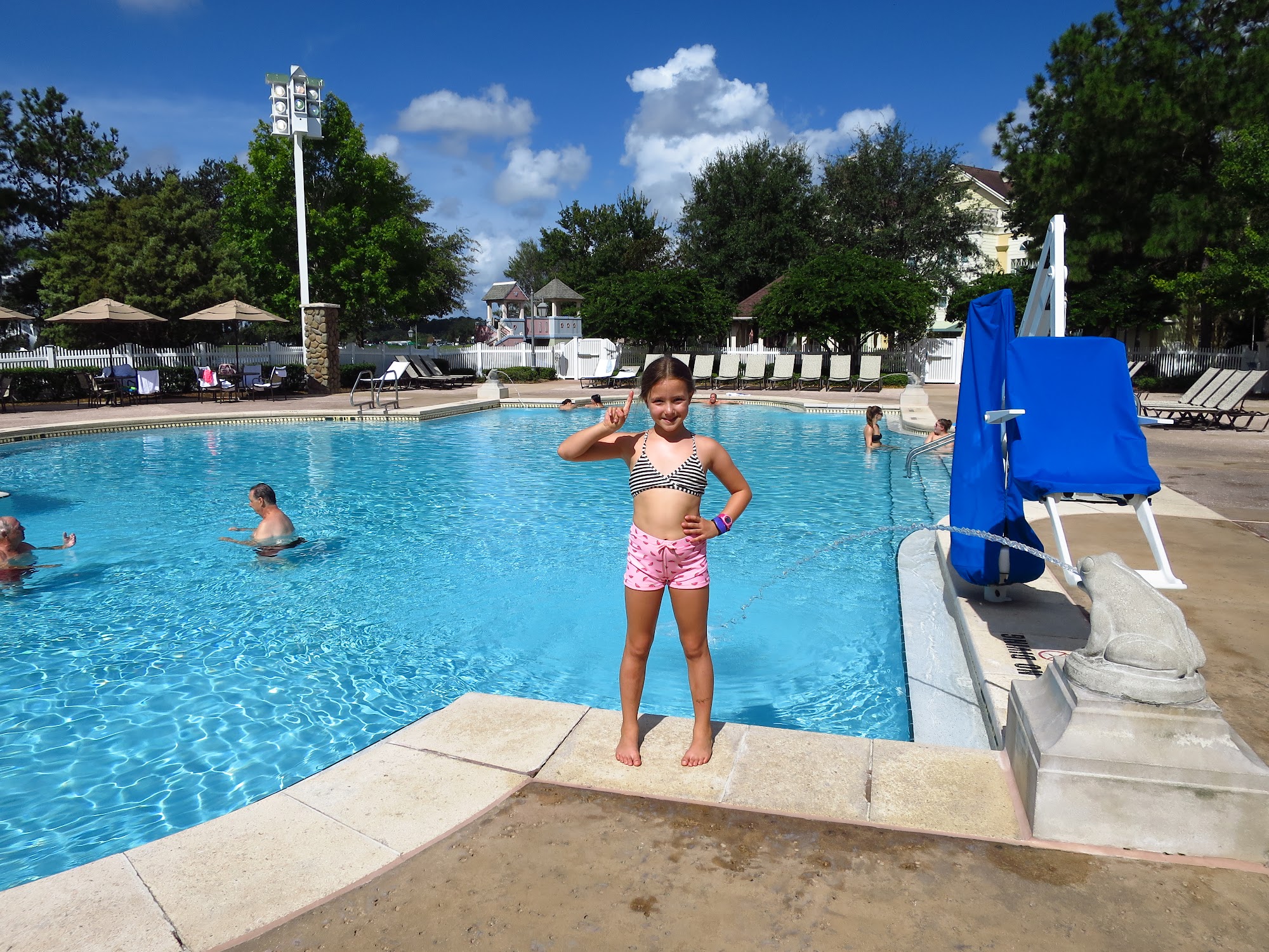 Deepest pool in Saratoga Springs. Classy pool deck with amazing panoramic view of Disney Springs. Children's area looks like a castle.