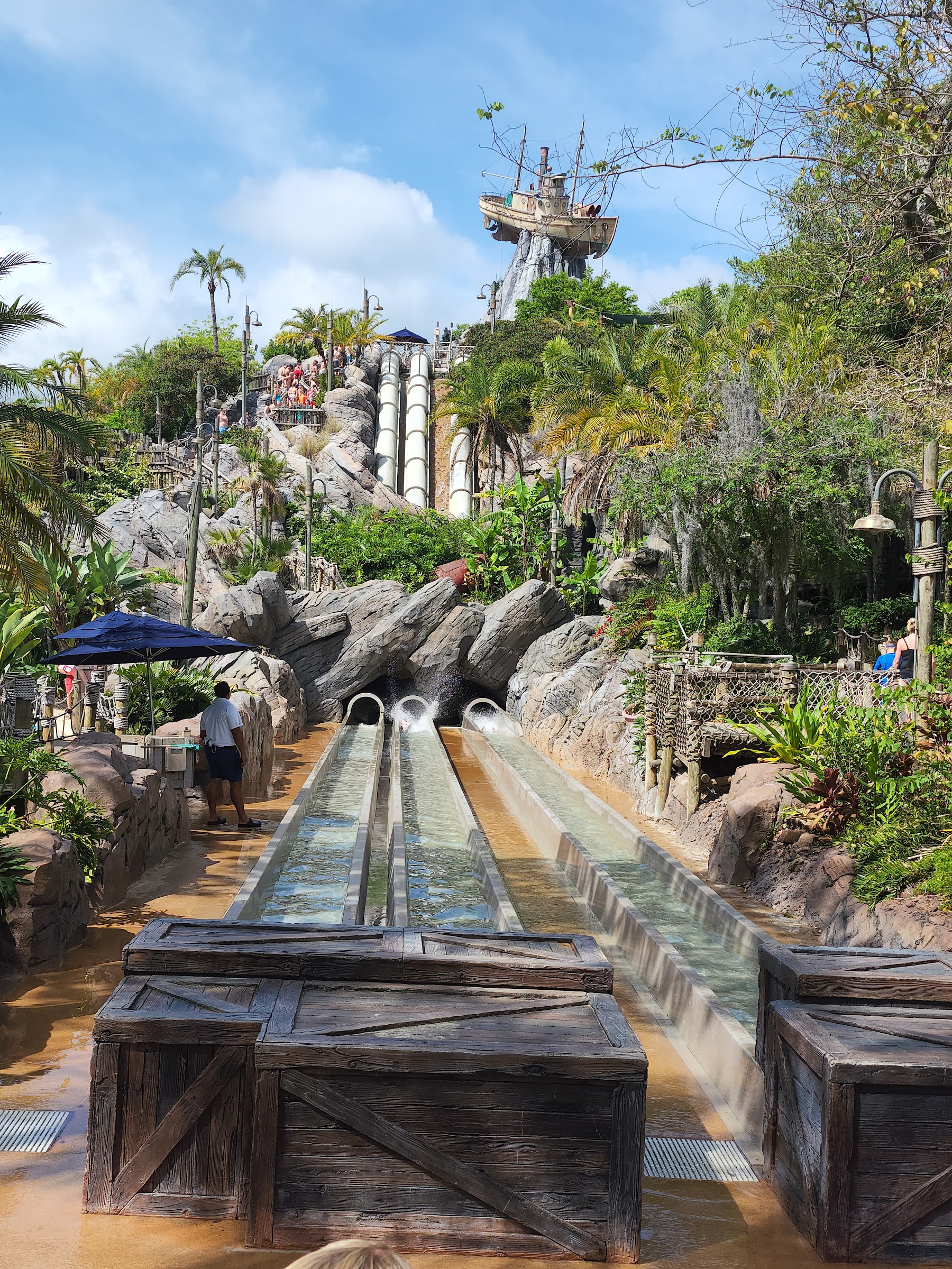 We (4 adults) had a few hours at Typhoon Lagoon. We started in the wave pool and then rode all the slides and raft slides. It’s best to arrive at opening time if you want to ride before the crowds build. Showers and changing rooms are available. It’s free to park here also unlike the main parks. It’s definitely worth a visit and you could easily spend the day here, although I’d recommend renting an umbrella or cabana if it’s hot as most loungers aren’t in the shade.