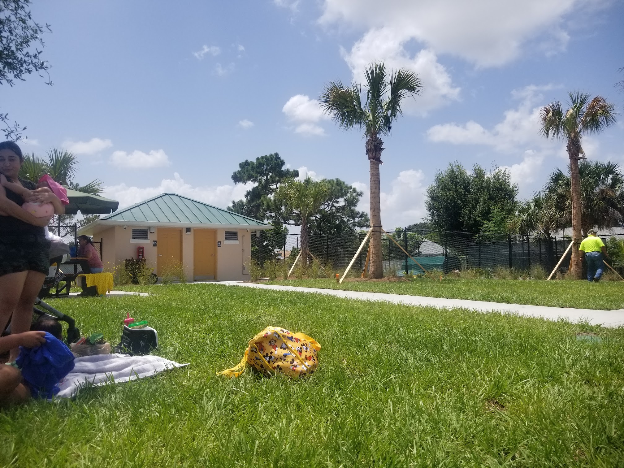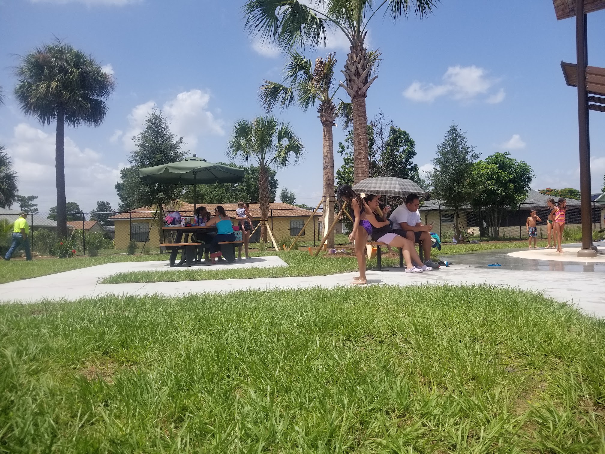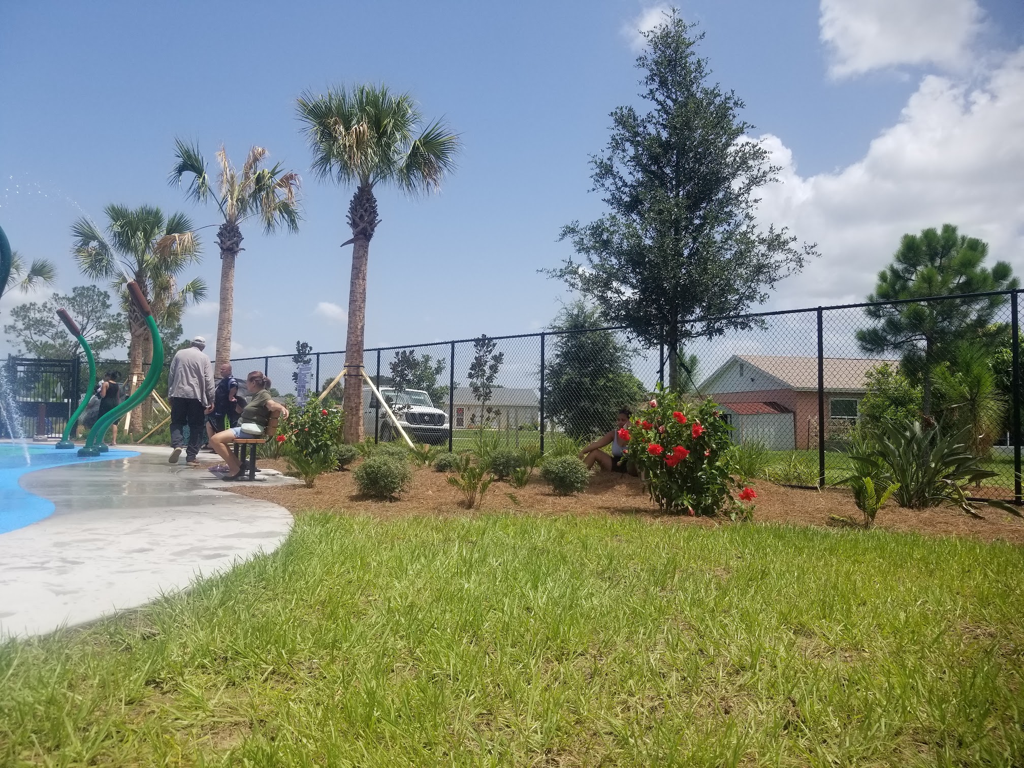 We went about 1:00p.m. There was a small crowd of kids playing and the parents sitting either on the bench or under a tree. Everyone getting along and enjoying the day. The place is clean and so was the bathrooms.
