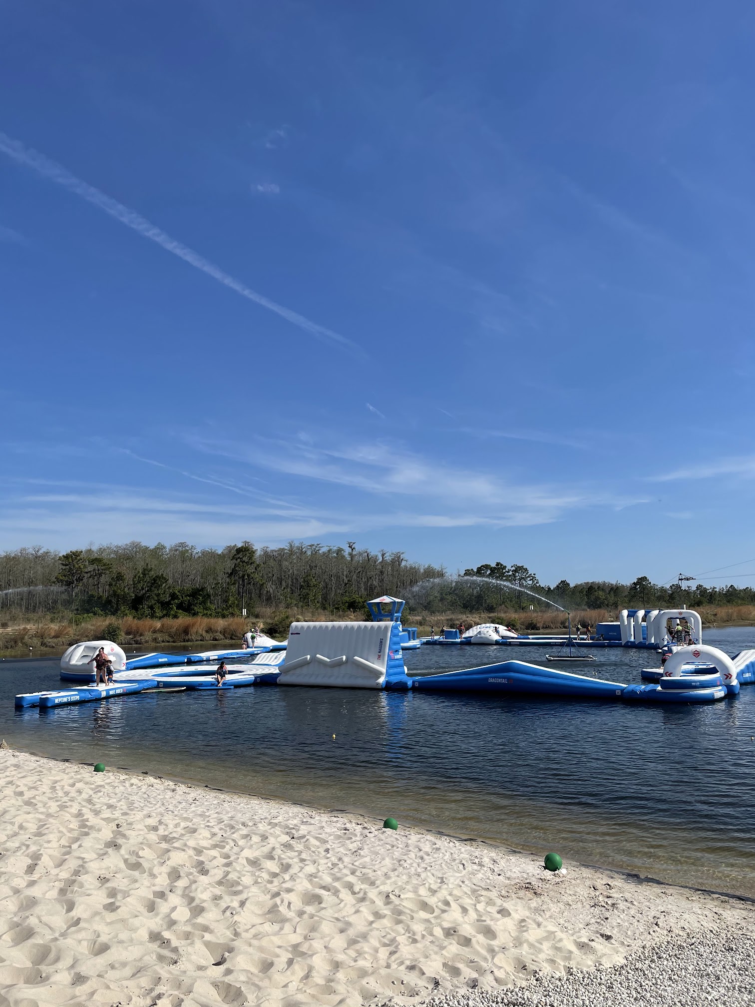 Great place to bring your family! They have a cool water sports area with a pully system for wake boarding or kneeboarding. A huge outdoor obstacle course and an inflatable one in the water. We loved the beach area with real sand and cabanas you can rent. Perfect for a hot summer day. The owner was here too and he is super nice. Highly recommend!