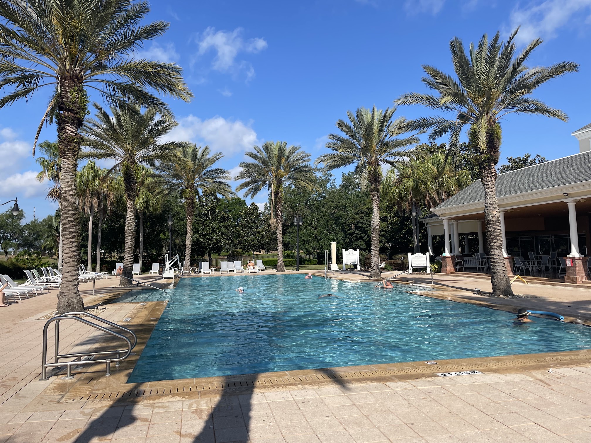 The Seven Eagles Pool, located at 1338 Seven Eagles Ct, Kissimmee, FL 34747, USA, is a prominent and popular amenity within the Reunion Resort. It features a large, multi-level swimming pool, two oversized hot tubs, and is complemented by the 'Eagle's Nest' snack bar and grill, offering a family-friendly atmosphere for relaxation and recreation.