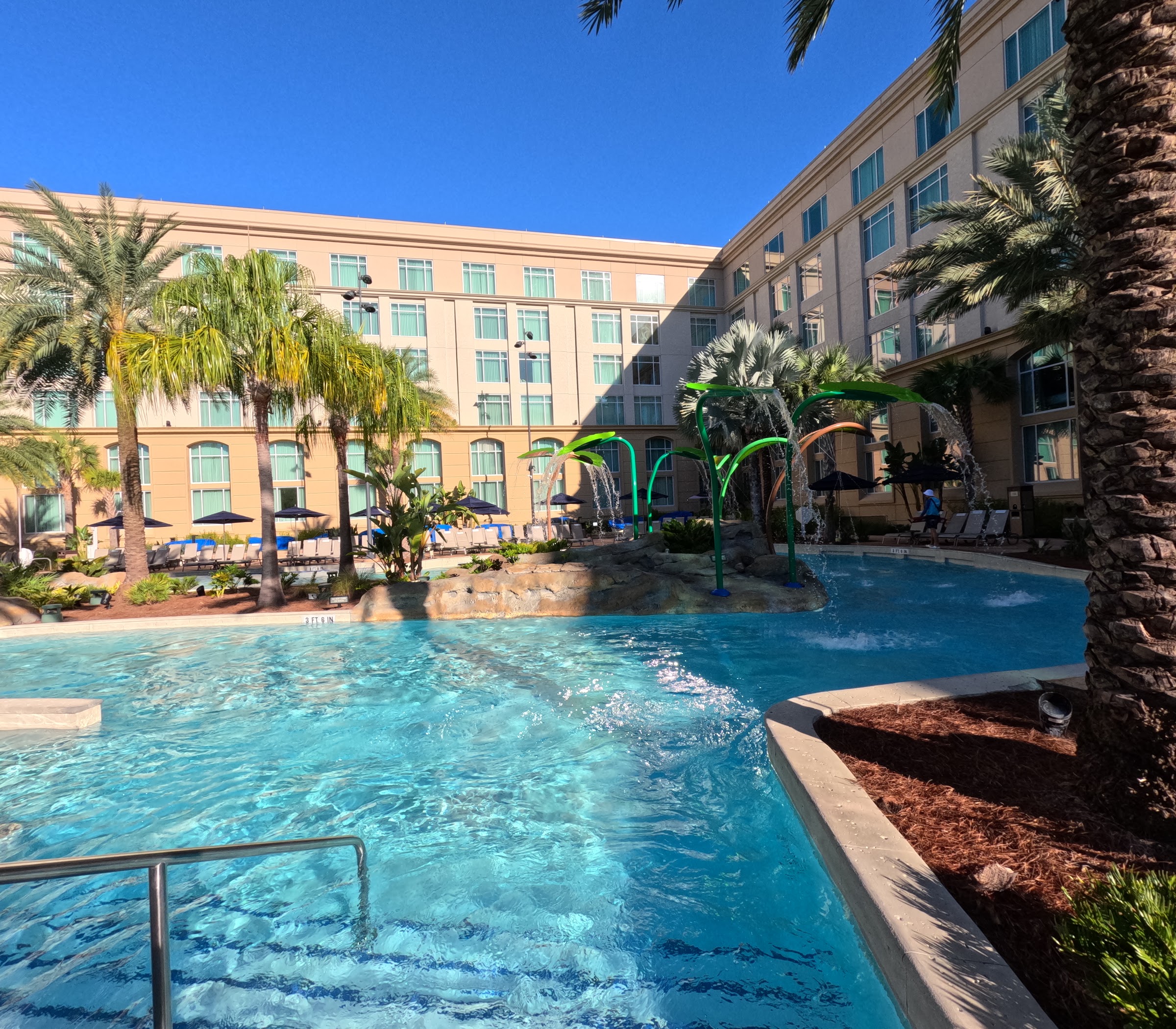 What are people saying (AI review summary)? The hotel receives high praise for its excellent, large, and clean pools, which are open until 10 PM and offer beautiful scenes with ample seating. Guests particularly enjoy the multiple pool options, including a quieter South Beach pool that, while open to all ages, remains mostly adult-oriented. The overall hotel experience is highly rated, with mentions of kind staff, good room service, and many available activities, all within a unique and beautiful 'pool resort inside a hotel space dome' setting, making it a highly recommended destination.