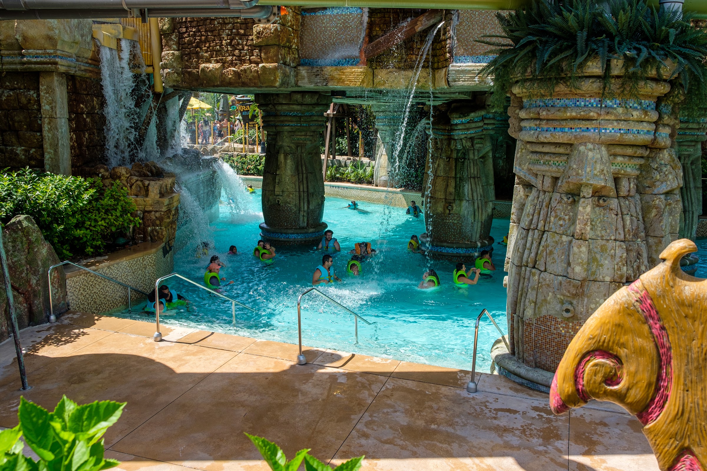 Fast moving river with rolling waves and rushing waves. Lifevests are required and provided. The flow through the center of the volcano and affords an awesome view of the mix of slides and stairs within! The river is a thrilling alternative to VB's much slower river. Watch out for the wave rush - it raises the water temporarily and catches some people off guard... Your head will go underwater for just a sec!