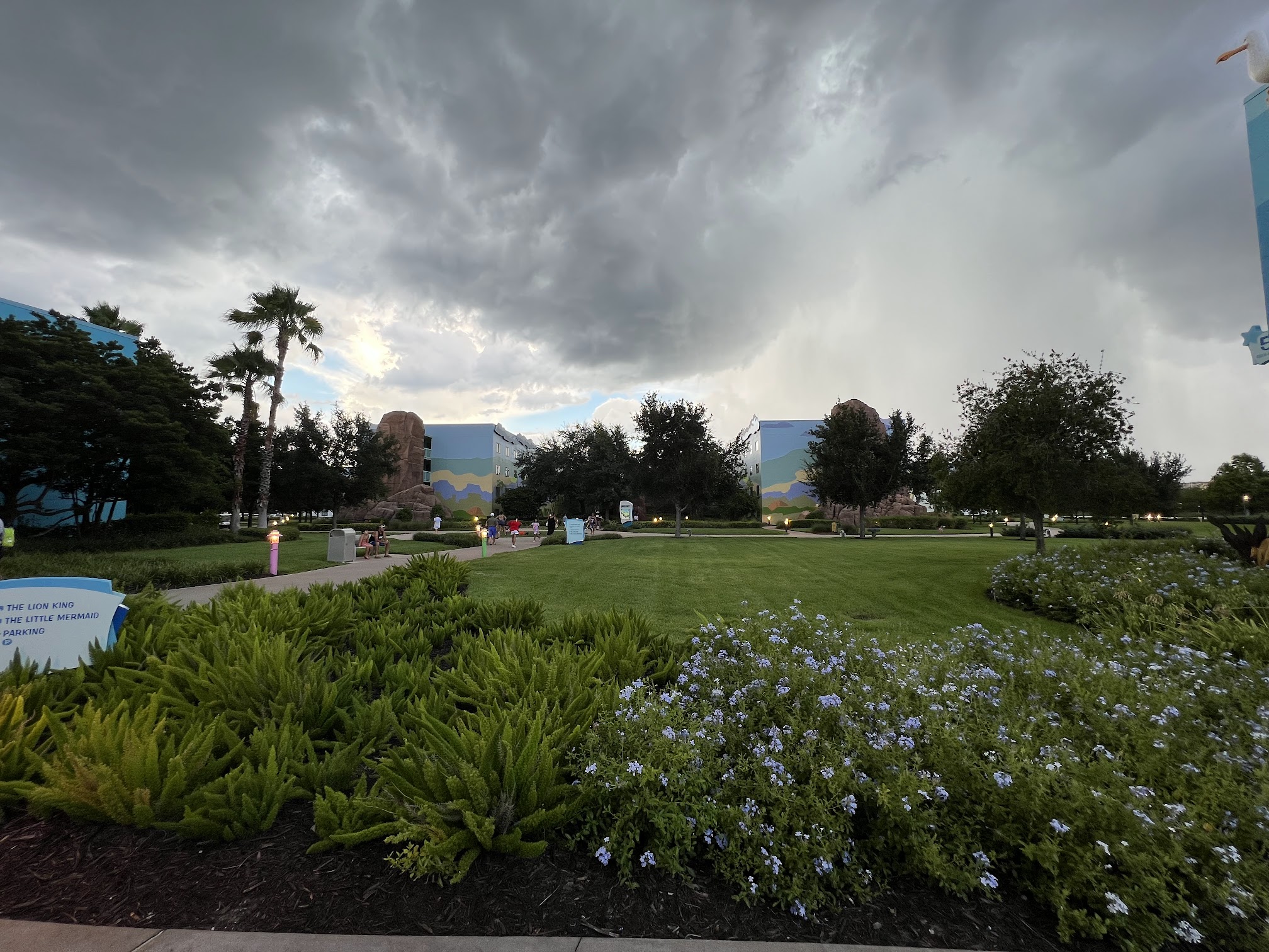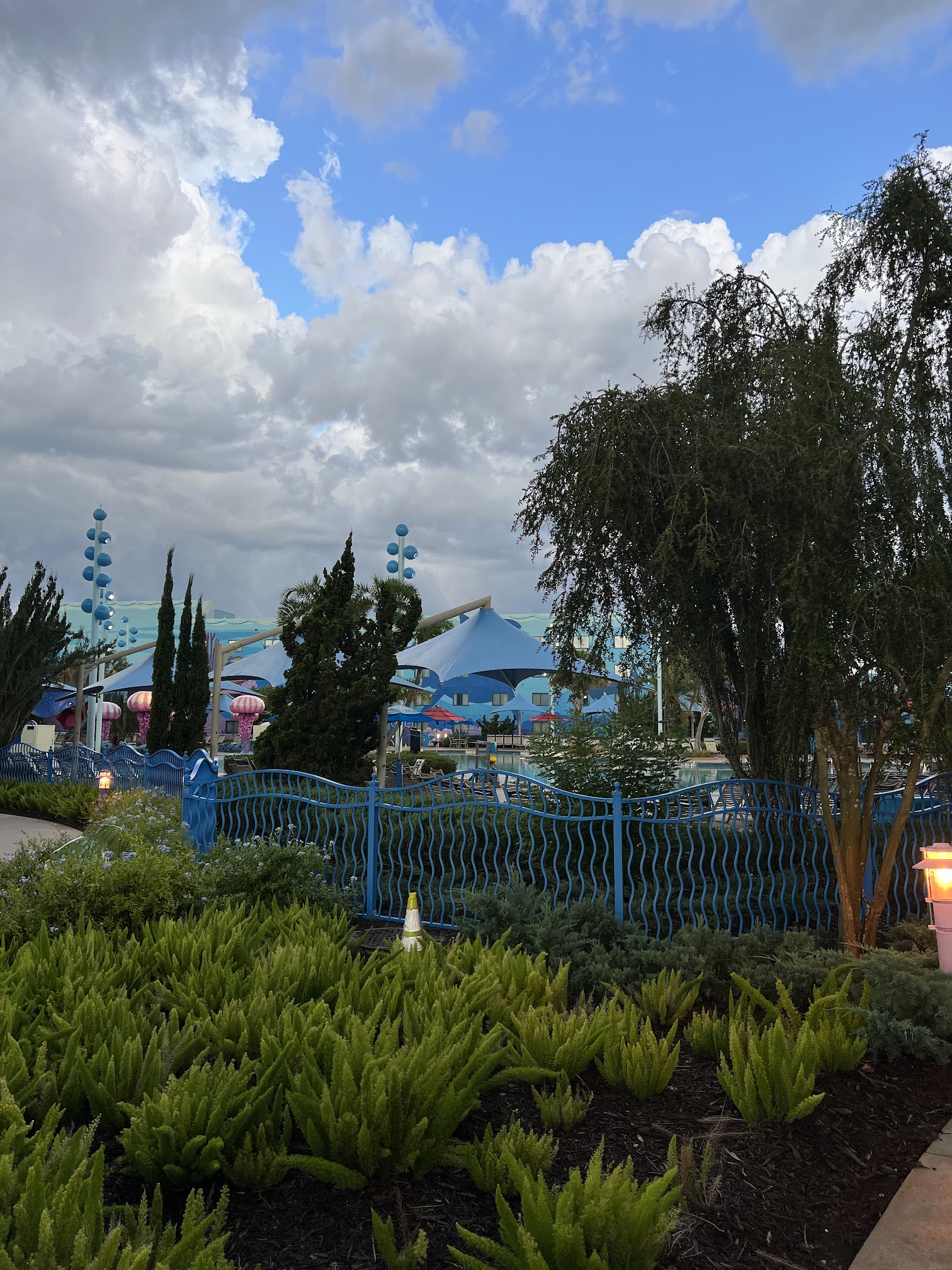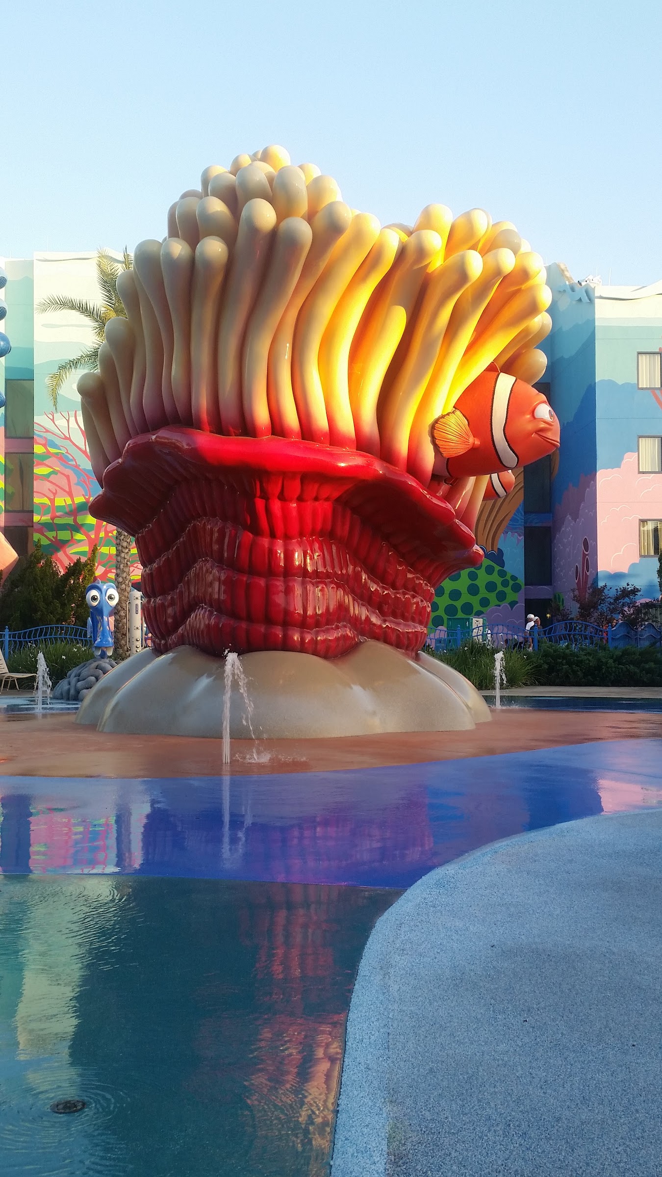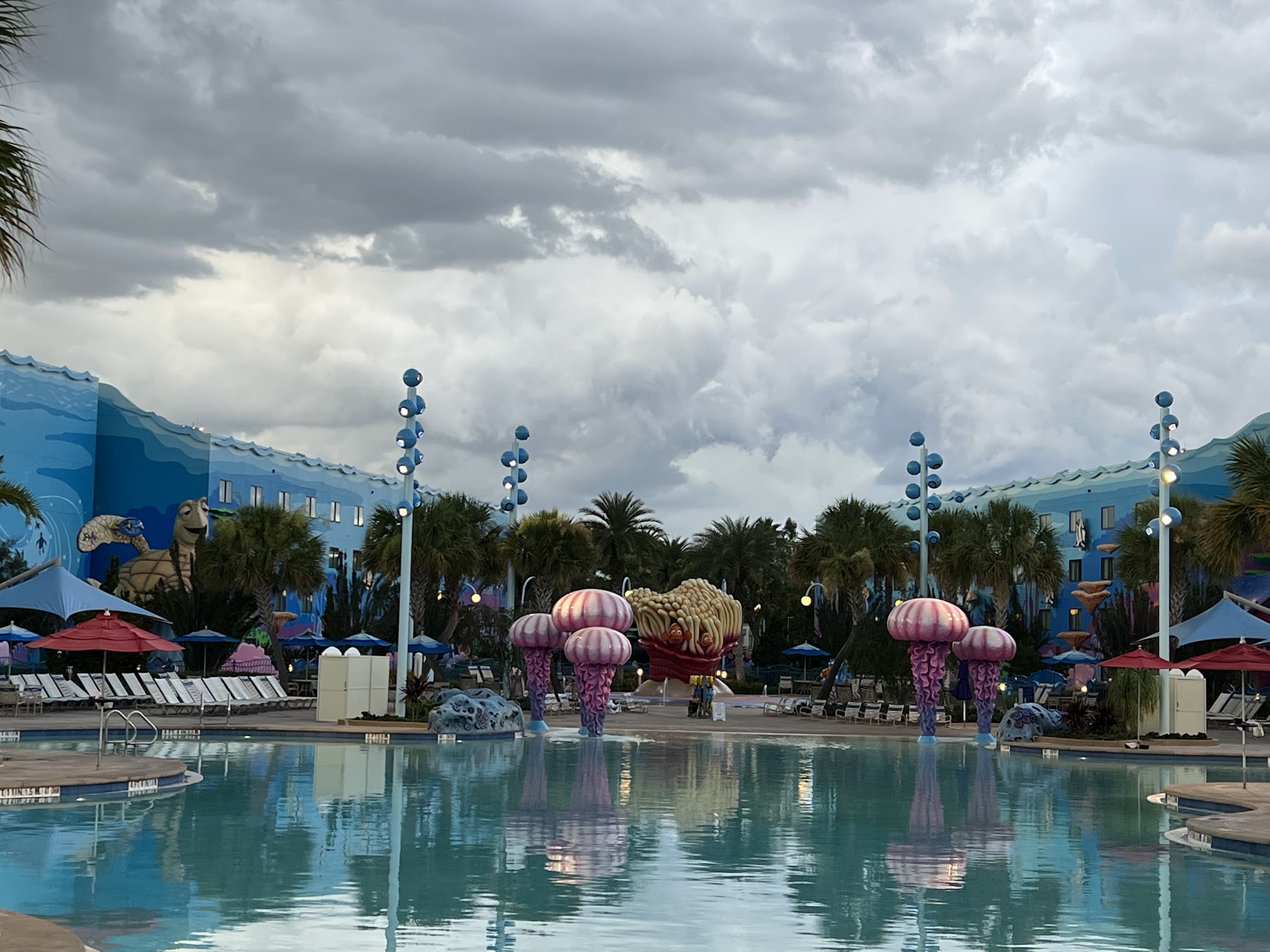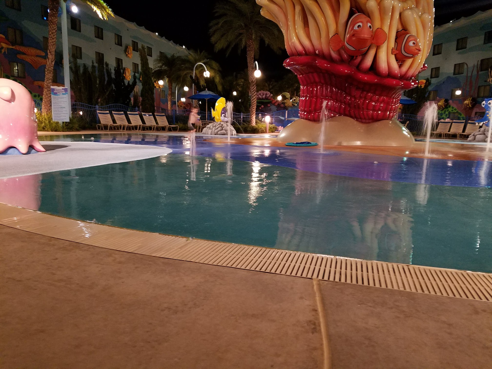 Hold your breath, go under water, and listen!!! Biggest hotel pool at Disney. Amazing art and animation pieces all around and in the pool area. Doesn't get very deep, and it is often crowded, but the pool is a great place to relax. Plenty of chairs, and a bar nearby if you need to unwind.