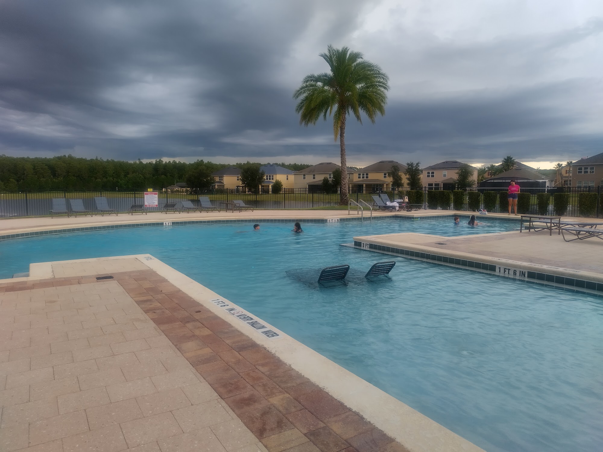 The community's resort-style swimming pool is generally advertised as heated. However, specific temperature settings or a precise temperature range for the pool are not publicly disclosed.