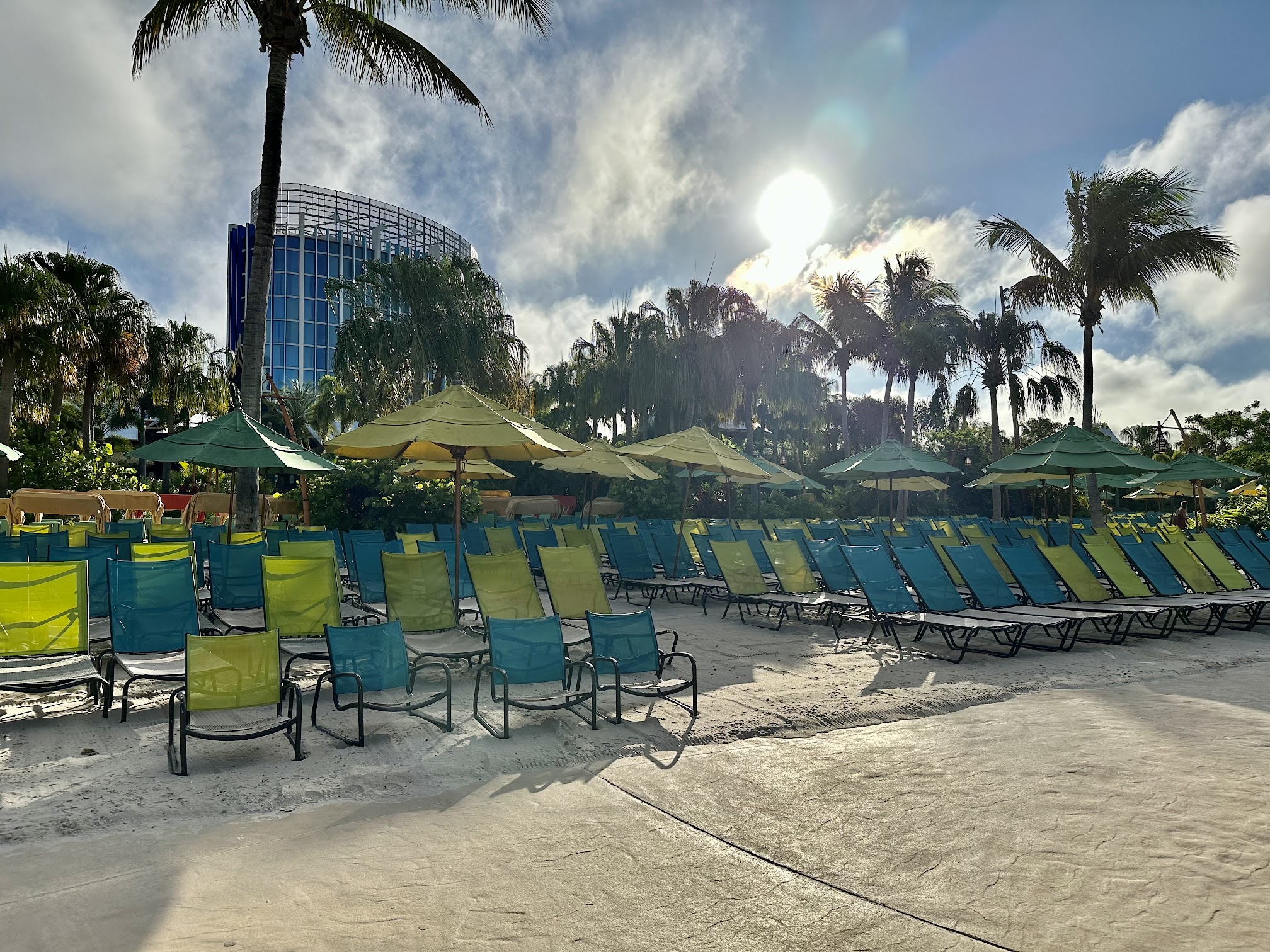 Well, this is very nice indeed. A beach with extremely fine sand surrounds the excellent pool. A pool with great wave machine which goes off with a lot of noise & clapping from lifeguards. The water rides are fun too but I didn't do the big side from volcano's top for 125 meters. Had a great wee Burger & juice at lunch. Would thoroughly recommend to anyone with access to volcano bay to take time out & check it out.