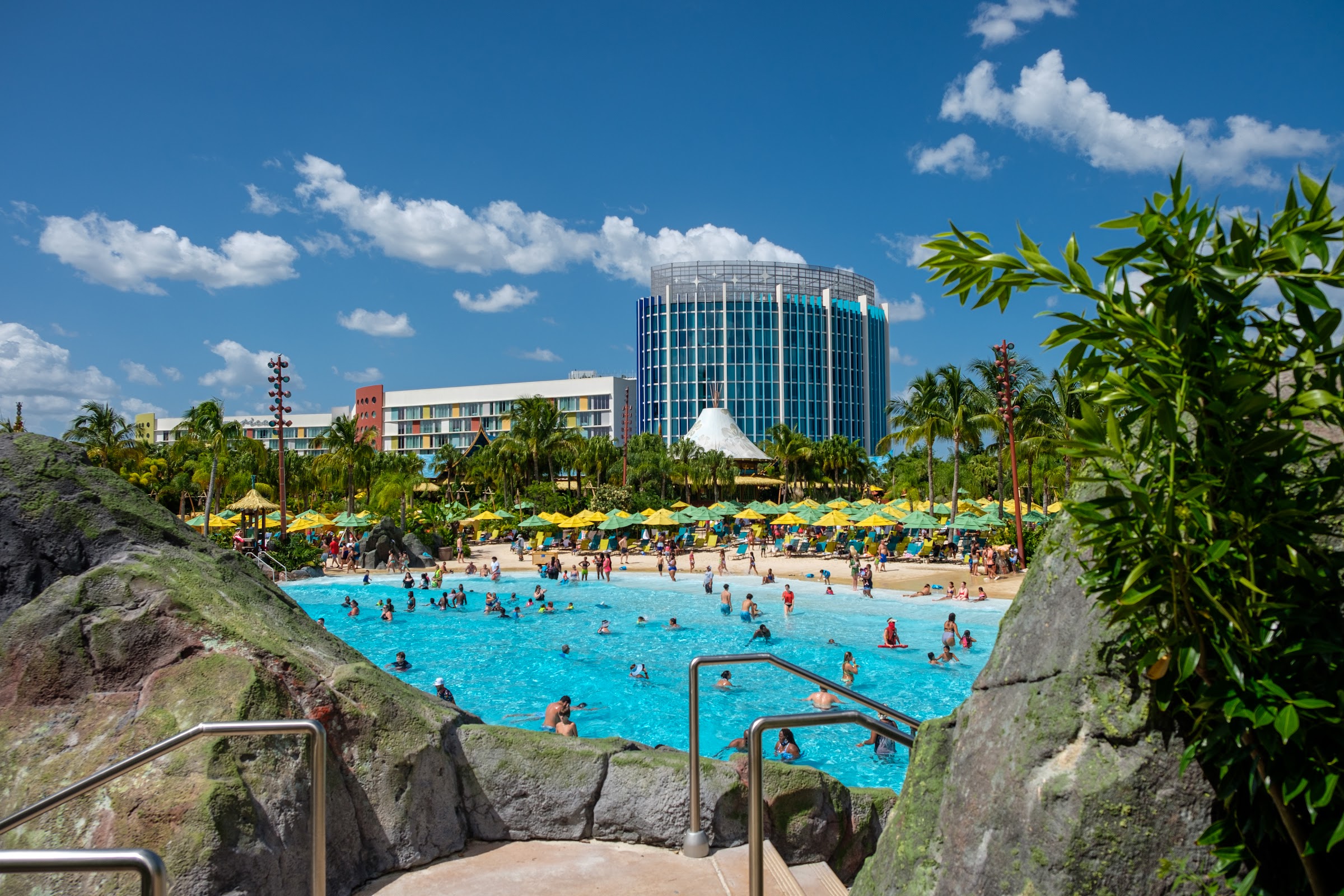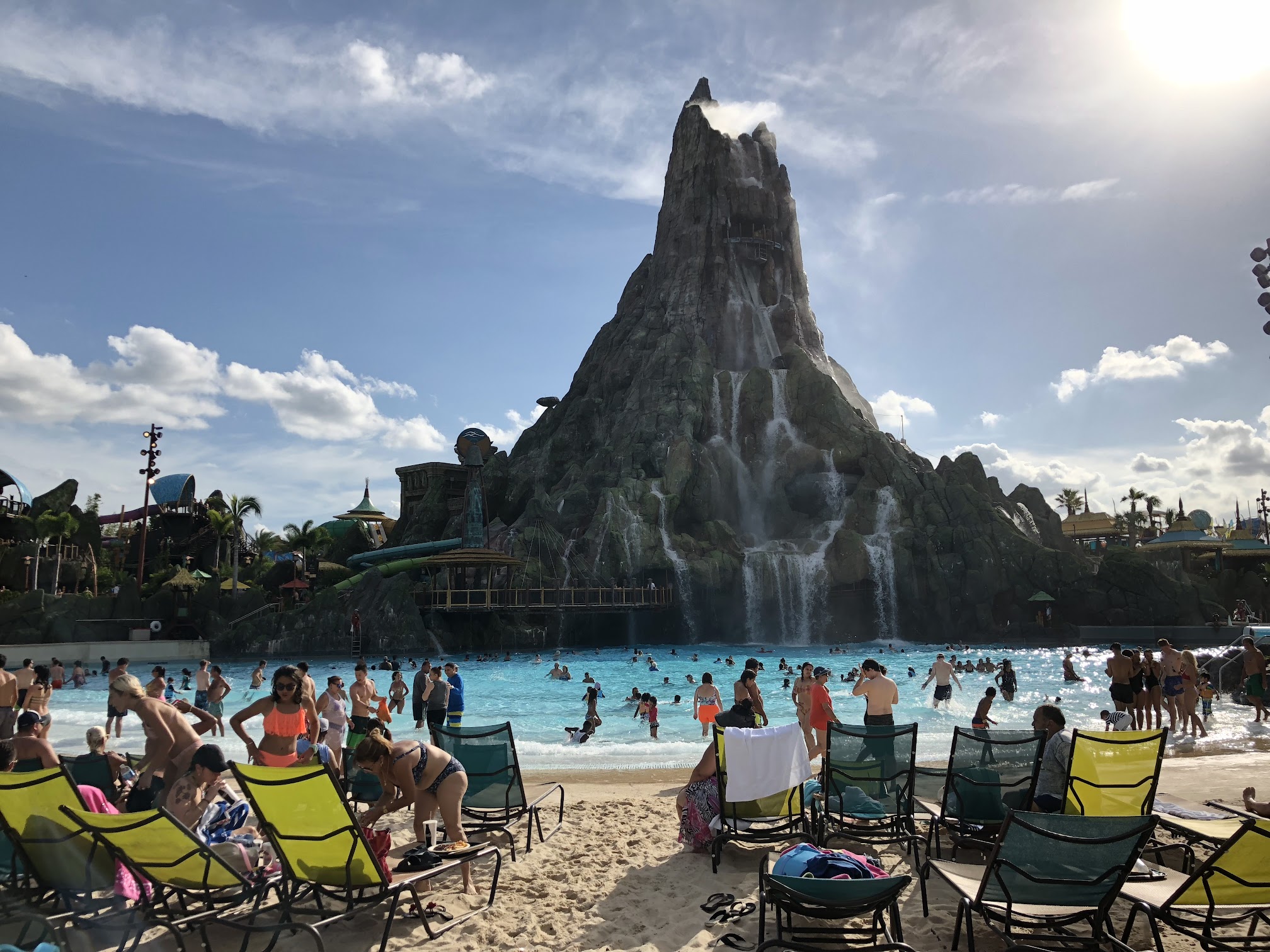 It’s a beautiful wave pool that’s huge and sits right underneath the big volcano. It’s almost like it’s the center point of the whole park. Waves are big and fun to swim in. Overall a great addition to the center of Volcano Bay.