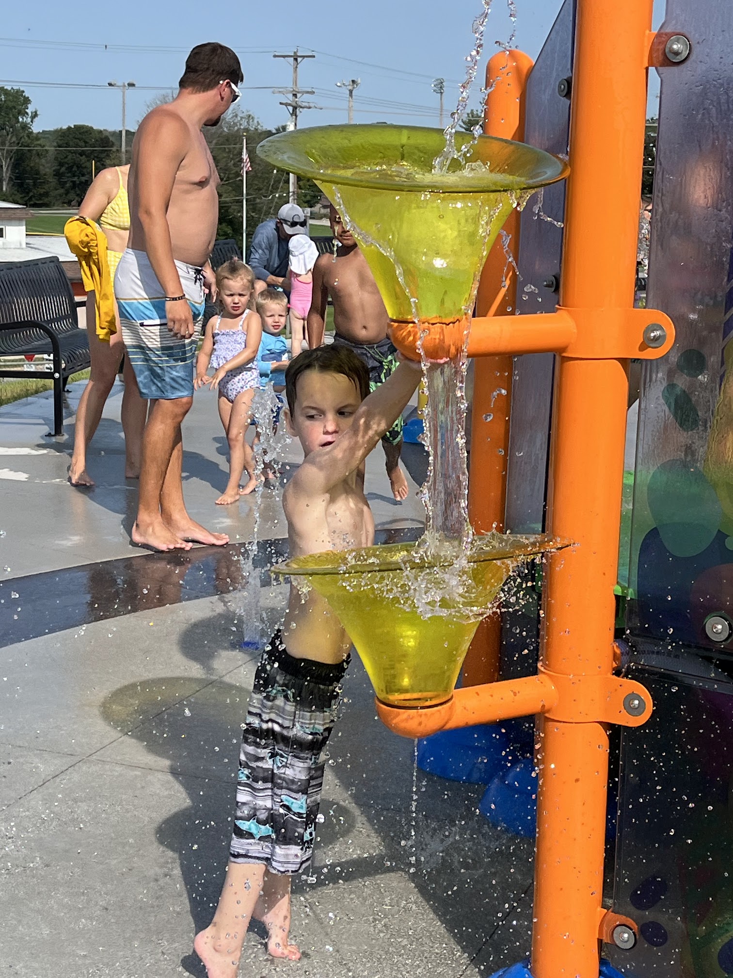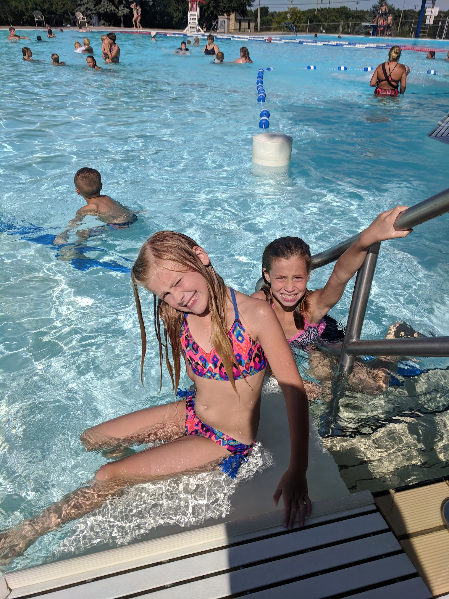 Tons of wasps/hornets swarming under tables and around the area between the pool & splash pad. I took a picture of atleast 4 bees with more flying around. A lady standing behind me was stung by one while I was sitting down. Other than the bee issue my children enjoyed the pool. I would not bring my husband or older son here as they both are allergic to bees.