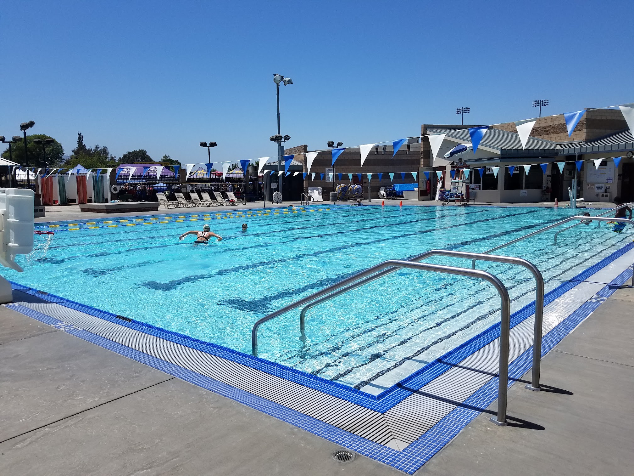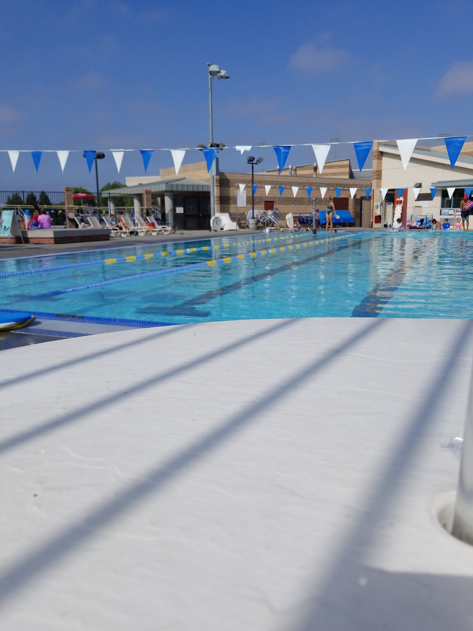 What are people saying (AI review summary)? The community pool is largely praised as a great, clean, and comfortable spot suitable for families, children, and lap swimmers. Reviewers highlight the wonderful and genuinely interested instructors, friendly staff, and the overall enjoyable experience for kids taking swim lessons. The facility offers a nice pool area, comfortable water temperature, eight lanes for lap swimming, designated shallow areas, and amenities such as locker rooms, heated showers, lounge chairs, umbrellas, and ample parking. Many find it an affordable option, especially with the family pass. The primary complaint, however, is the excessive use of chlorine, which one reviewer found harsh enough to cause hair damage after repeated visits, suggesting a need to space out trips. Some also expressed a wish for longer lessons.