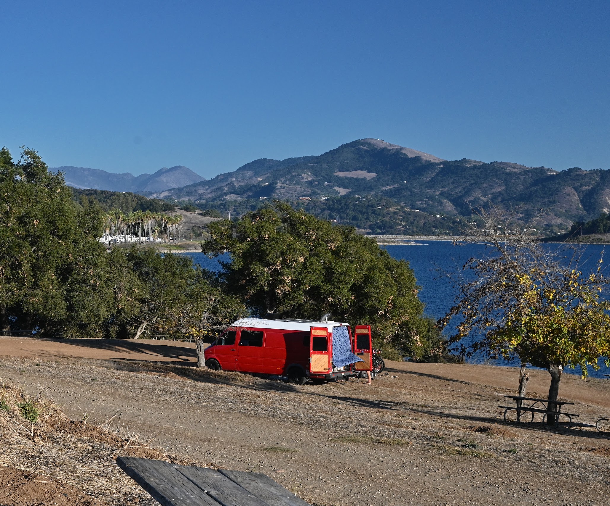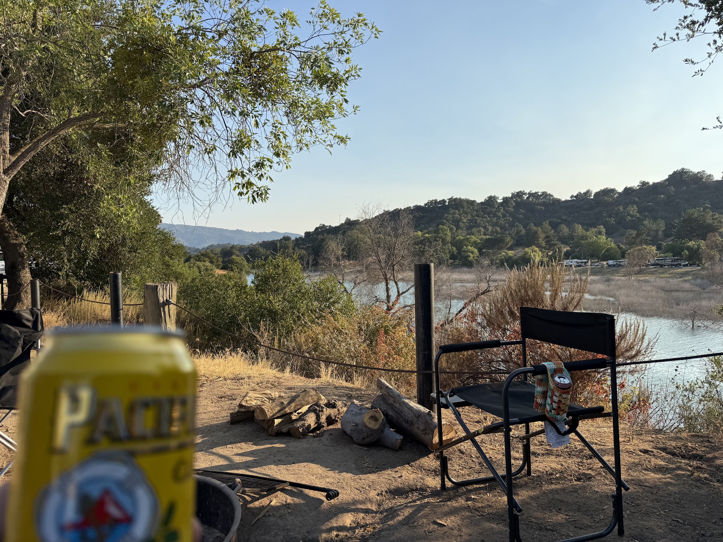We stayed at Site M at Lake Casitas for a weekend camping trip with 12 people across two sites. The lakefront views were absolutely beautiful, with a gentle hillside providing a clear line of sight to the water. It’s peaceful, scenic, and especially great for families looking to relax in nature. Each campsite had room for 2–3 medium tents and 2–3 cars, though only one vehicle is included per site. We didn’t realize until later that extra cars cost $30 each—this detail was buried in the long confirmation email and not easy to spot. Worth checking ahead of time. The kids enjoyed the small playground right by the water—not fancy but perfect for burning off energy with a gorgeous lake backdrop. The fire pit had a built-in grill (though a bit worn), which worked well for both BBQ and evening bonfires. Bring foil or a grill brush if you want it cleaner, but it does the job. Restrooms were just okay—not very clean, and they only had toilets and urinals, no sinks. There are water faucets spaced every 200–300 feet, which was helpful, but no showers available on-site (at least not nearby). Be prepared for that. We tried our luck at fishing—the water was clear and clean, and we spotted some 12–14” carp swimming close to shore. No bites this time (no carp bait!), but the area is safe for kids to skip rocks or dip their feet. There’s also a small flooded bridge between sites that seems like a great fishing or photo spot. The best part of the trip was simply the time spent together: campfire chats, grilled food, drinks, and even movie night with our own projector. Nature, family, laughter—it was the kind of weekend that stays with you.