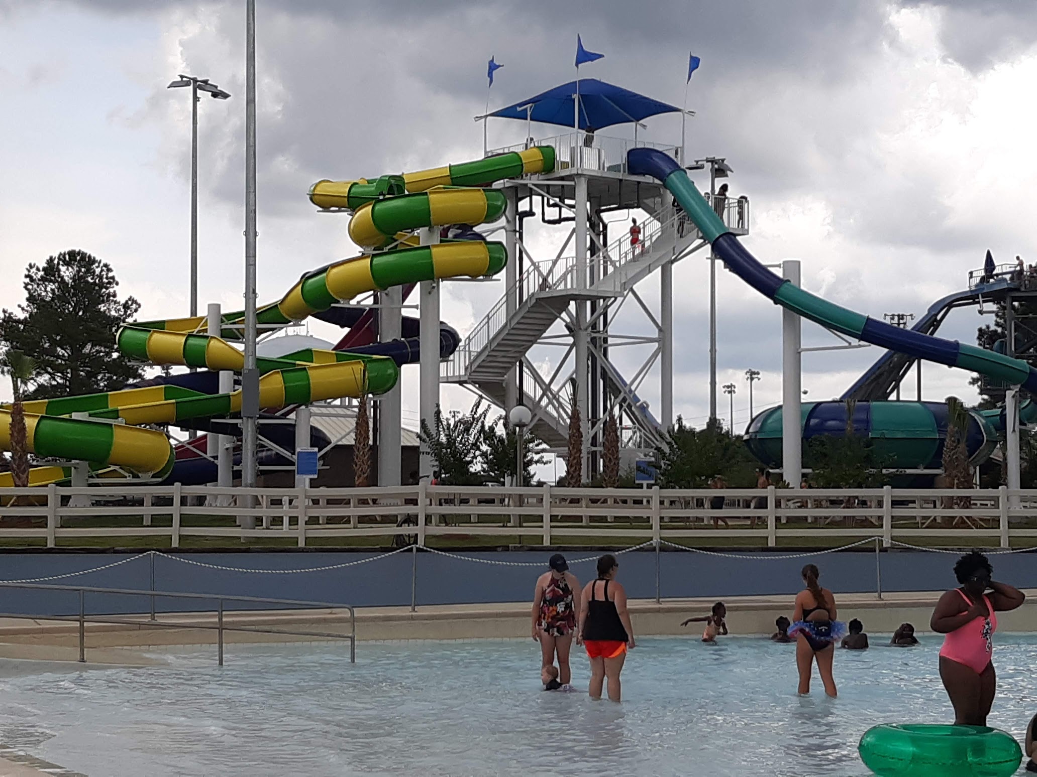 What a great place, the lines were pretty short. Coolers are allowed which is a huge plus. We didn't have to pay 10.00 for a bottle of water. 5 slides, one uses tubes "great white." It's fun. Nothing too violent for kids. The wave pool was nice as long as dumb people didn't try to drown one another in it taking the attention from the life guards for children that might need their attention. Closed the rides when lighting was in the area but as soon as it was gone they were all back open very fast. Most of the stuff was great. Just like everywhere there were a few that hate their job but what place doesn't have that. They should give the life guards the power to put some of these kids in time out or something, parents no where in sight while their kids do as they please, wait their parents were probably the ones trying to drown one another in the pool... 🤣