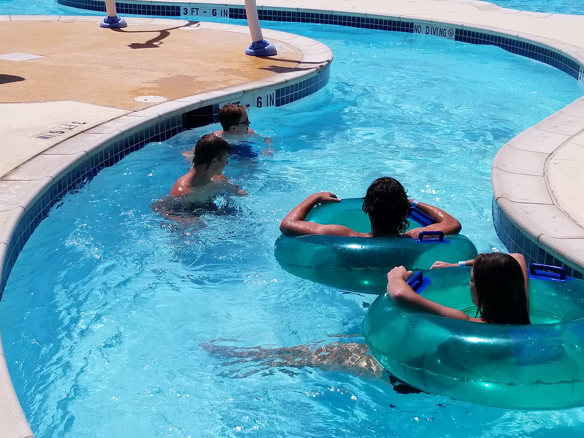 My husband, 2 of our really good friends, and I have been here several times before and we always thoroughly enjoy it. We travel in from out of town just to go!!! The lazy river is usually pretty crowded but it does depend on the day and time you are there. If you're looking for a workout, try walking against the current in the lazy river!!! You will definitely feel it the next day!!! The slides are really fun. My husband loves the tallest one! The lap pool is usually very warm in temperature, especially after being in the other water areas, and the deep end of the pool has a shelf-like area all around the outside of the pool where you can stand and hold onto the edge of the pool. It's perfect if you're trying to conquer any fears about being in deep water with nothing to hold onto. The concession stand usually has a lot to choose from, including ice cream and a few hot food choices, and the prices are not bad. There are quite a few areas in the shade to relax or dry off in their beach chairs and usually there is a nice breeze to help with that. We will all definitely go back as we do multiple times per summer.