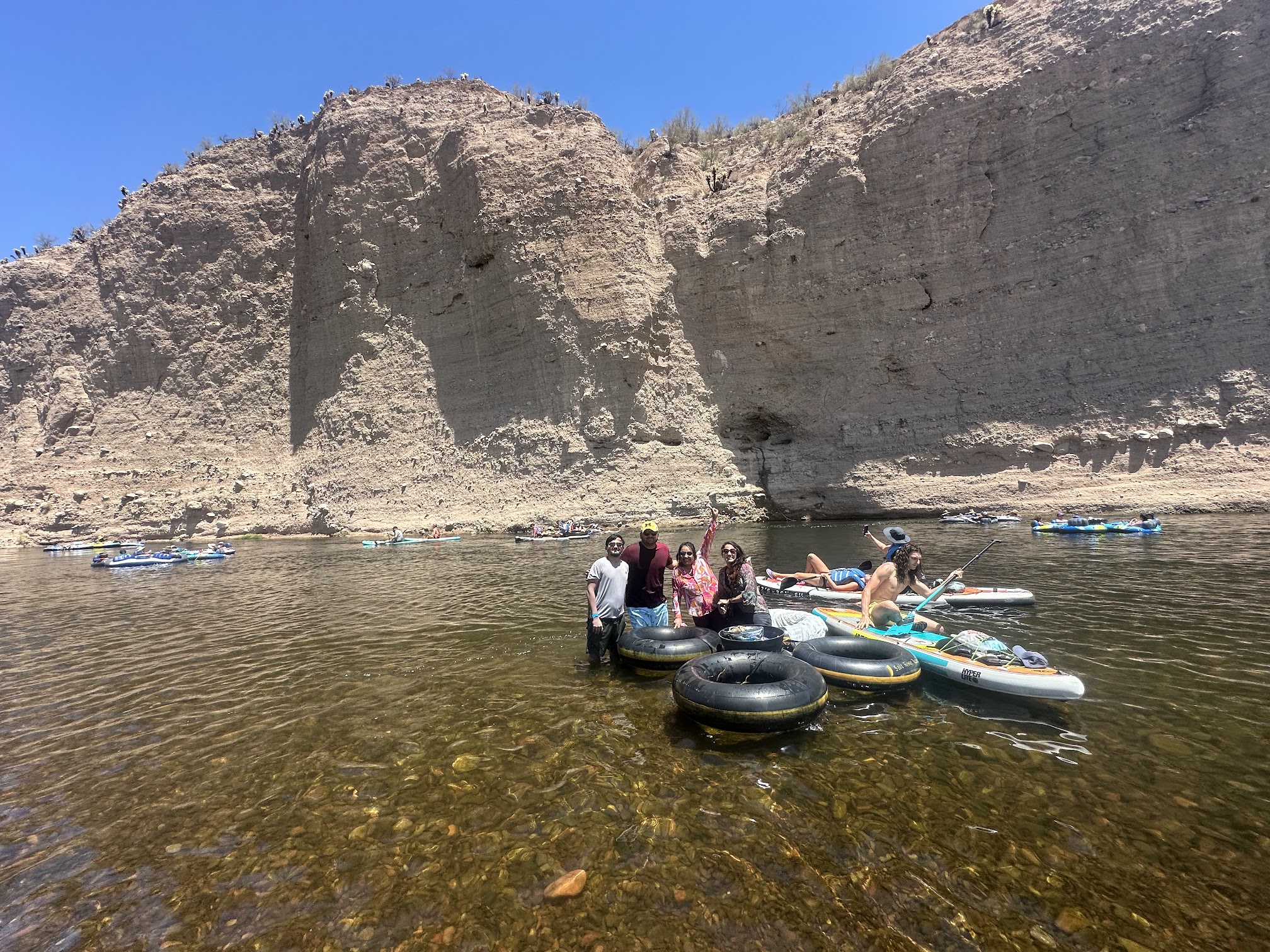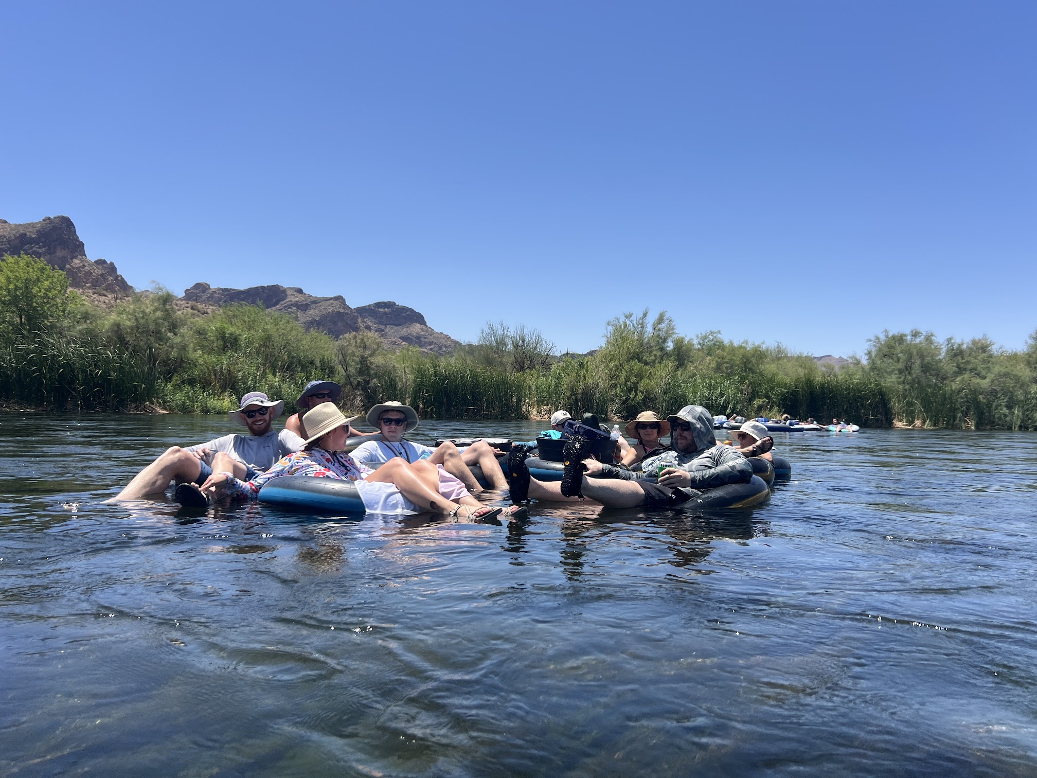 An Absolutely Perfect Day on the Water! Salt River Tubing is a must-do Arizona experience! The scenery is breathtakingly beautiful—the mountains and the intensely blue sky are the perfect backdrop for a day on the river. The water itself is incredibly refreshing and crystal clear, with a nice, gentle current that makes for a relaxing float. We could even see the fish and river grass below our tubes. We were also lucky enough to spot some wild mustangs along the shore and wading right in the water. There are plenty of spots to pull over for a break, and it's super convenient that they have restrooms available. A few essential tips for a great trip: * Footwear: Wear proper river shoes or water-friendly sandals. The riverbed is very rocky and slippery, and good foot protection is a game-changer. * Gear: Bring plenty of water and a cooler packed with snacks. A length of rope is great for tying your tubes together so you can float as a group. A brilliant hack is to use a toddler-fitted sheet to cover your inner tube—it keeps the black rubber from getting scorching hot in the sun! * Protection: Don't forget ample sunblock and a hat! And for the brave ones in your group, don't miss the chance to jump off the rocks—it's a blast! A truly incredible day on the river, we can't wait to go back.