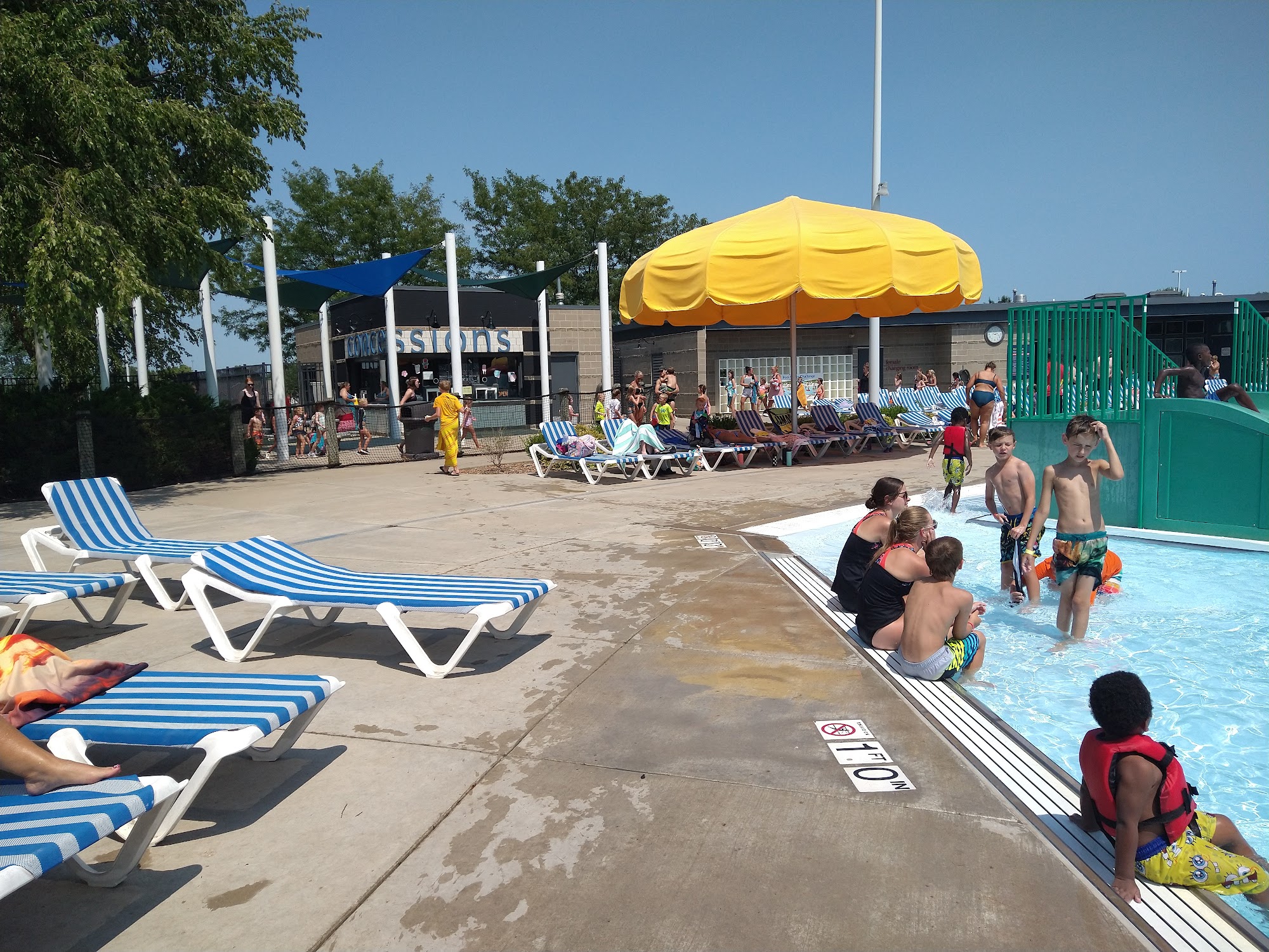 This place hasn't changed a bit since I was a teenager. What was reassuring is when there was any kind of emergency, a child falling on the concrete, something floating in the water, unlocated child, ALL lifeguards jump into action to assist and make sure whoever or whatever is taken care of as fast as possible. If there is an emergency, the paramedics are less than a block away. They don't do pool checks every hour so there's no out of the pool for 10-15 min and explaining to your kids why there's a perfectly good pool sitting empty waiting to be played in while the lifeguards just stare back at you. The lifeguards make the smaller kids do a swim test to prove they can swim in the deeper ends, and the truly deep end (10ft) where the drop slide and diving board are.