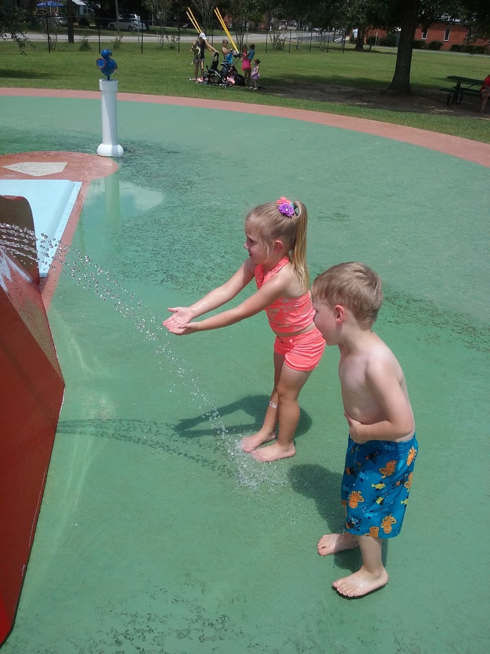 This splash park is in Robertsdale Alabama next to the ballfields and it is the best splash park in the entire county according to my son at the age of 6 years old. It's baseball theme style gives the kids lots of different type games they can play. Had a blast every time we came but it does have a closing timeframe where the water shuts off and during the summer when the days are longer, this can be a bummer at times.