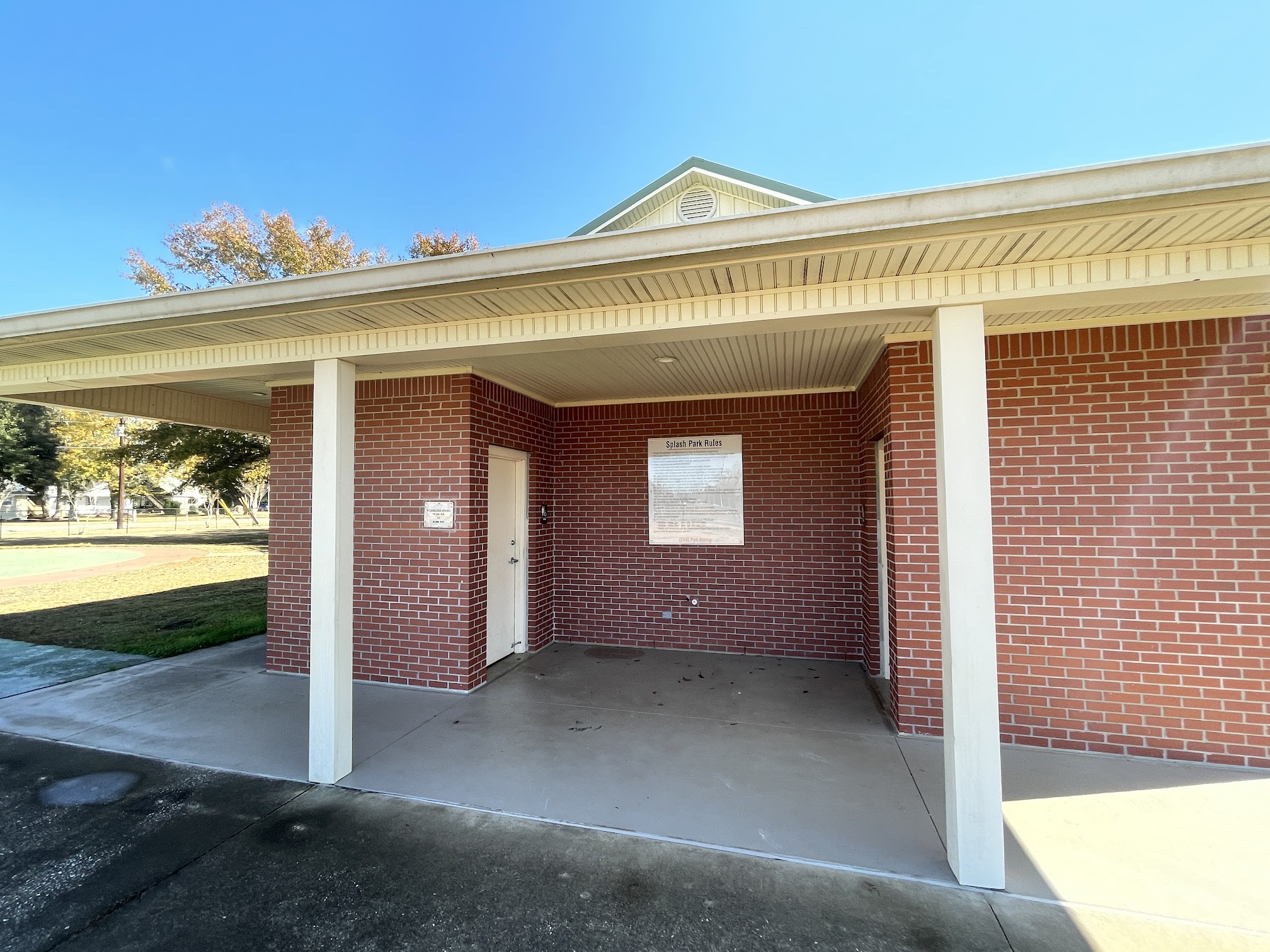 Playground with swings and a jungle gym, plus a popular splash pad and pavilion for parties.